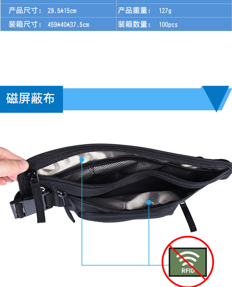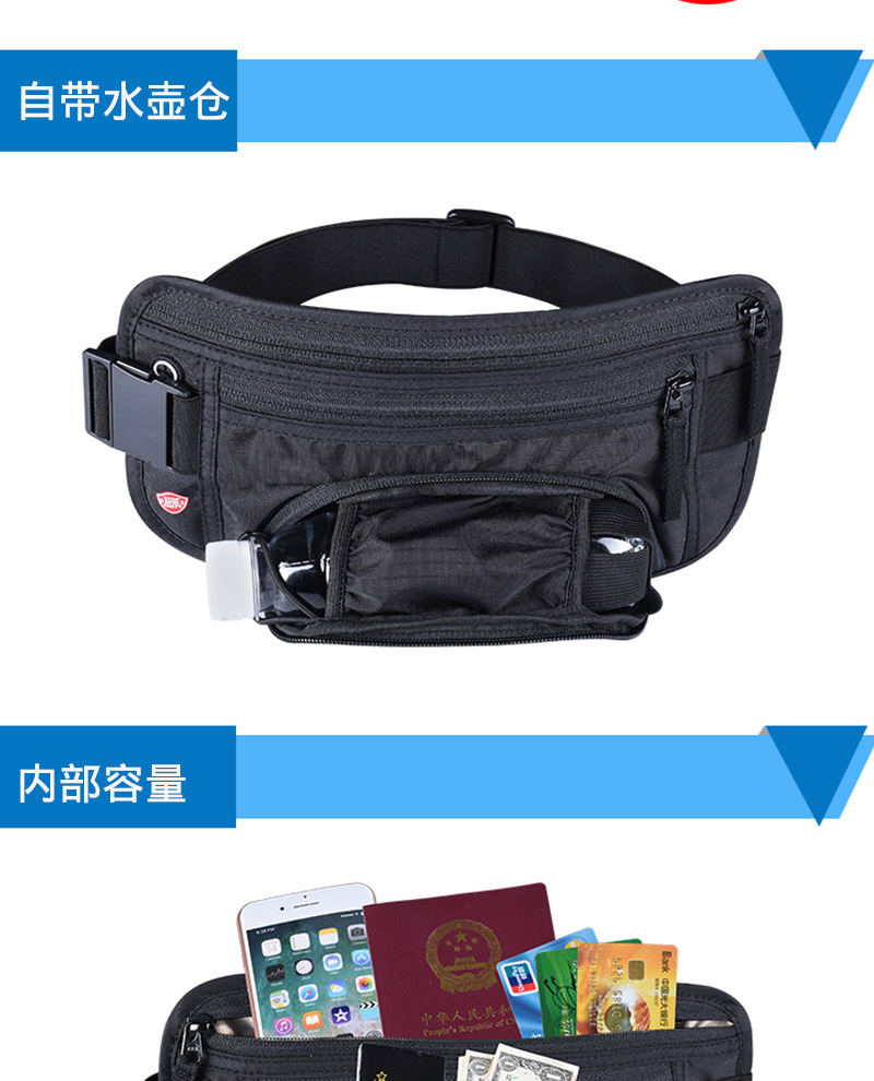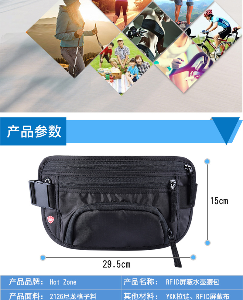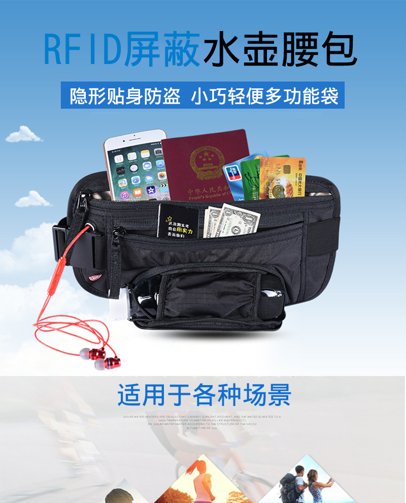 亚马逊户外休闲出国旅行超薄贴身多功能RFID防盗护照证件手机腰包