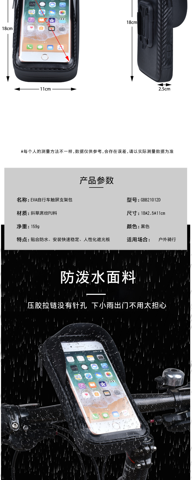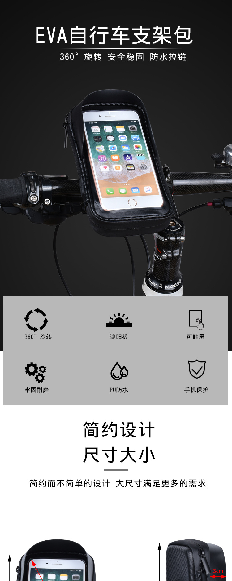 厂家直销EVA硬壳防水多功能360旋转触屏车前导航自行车手机支架包