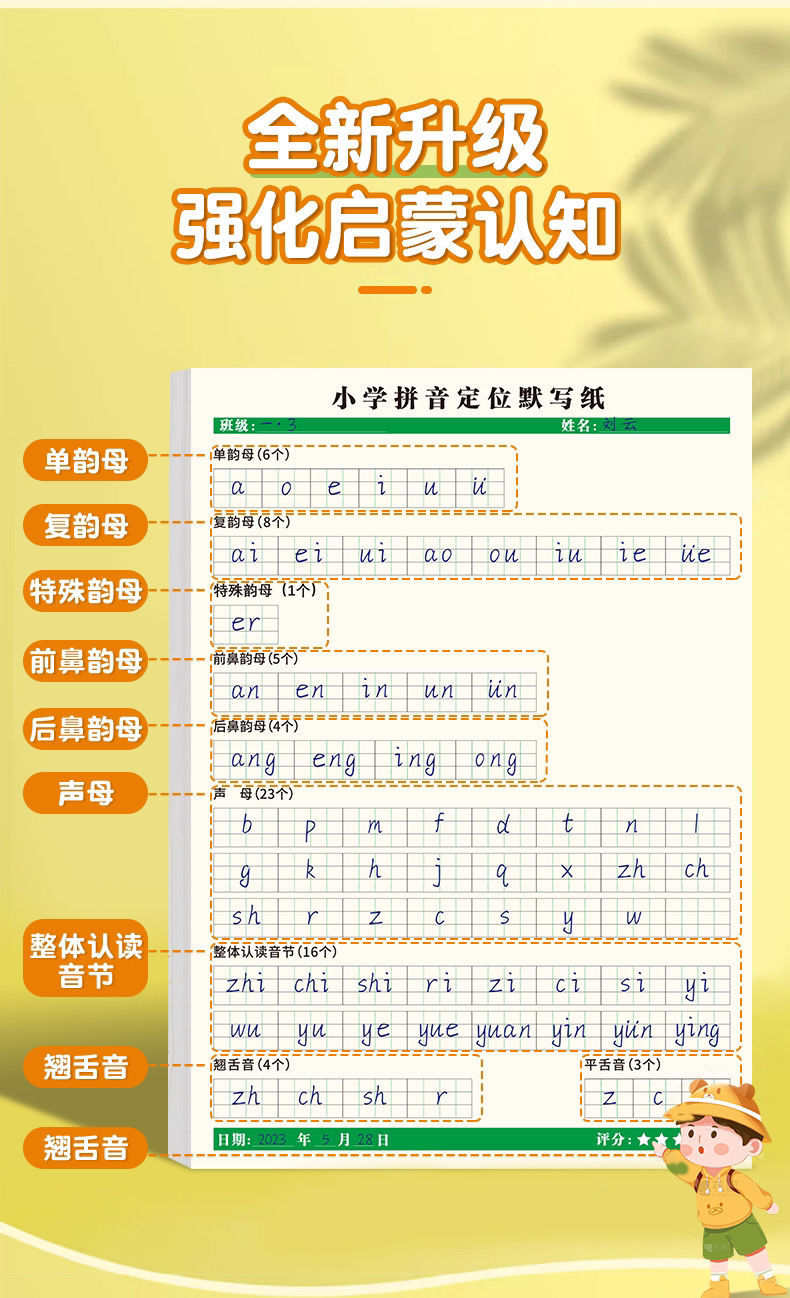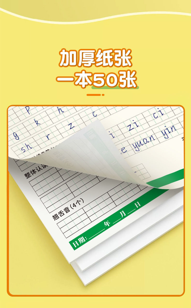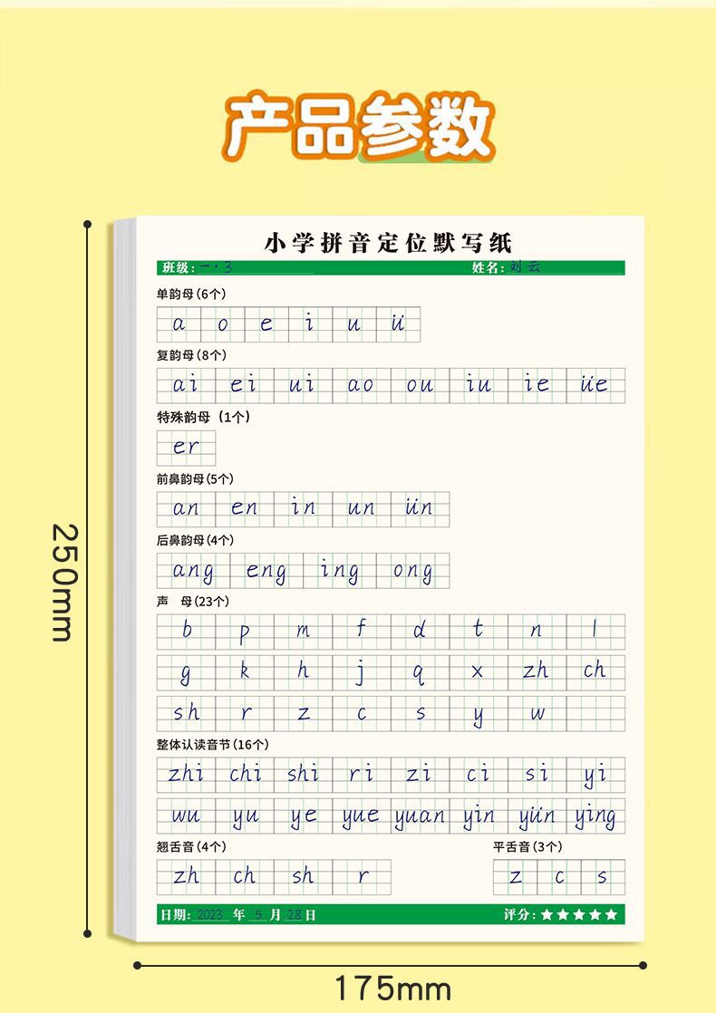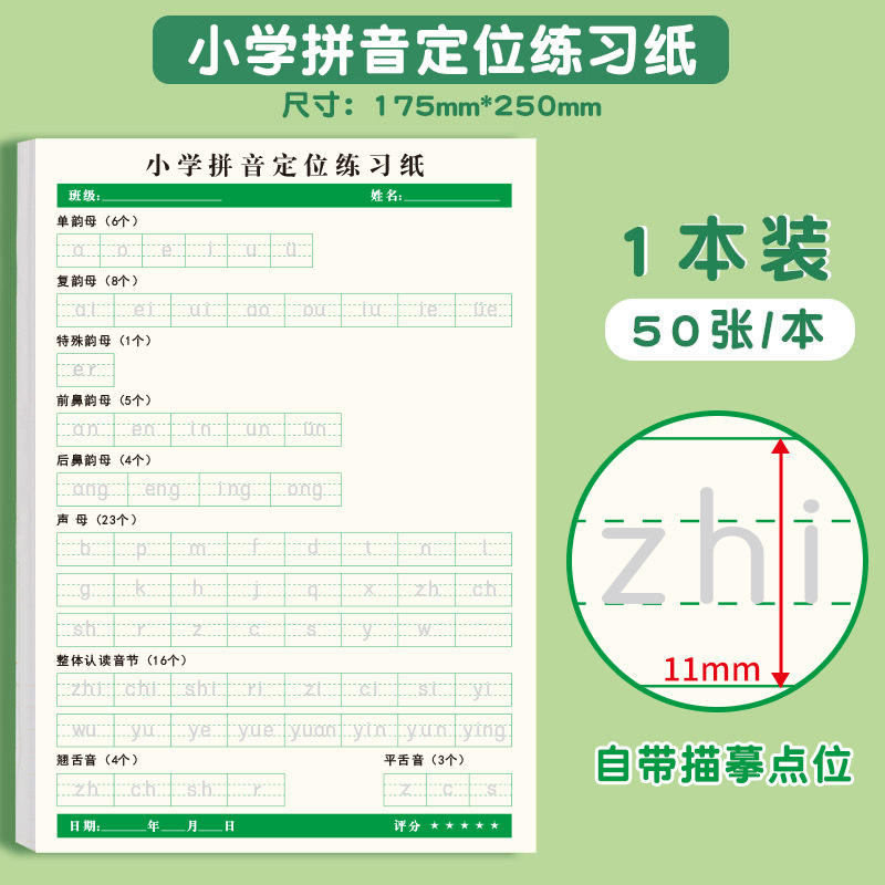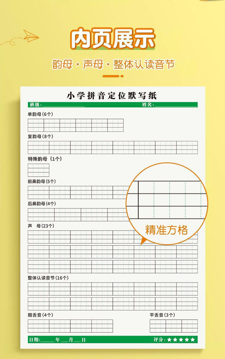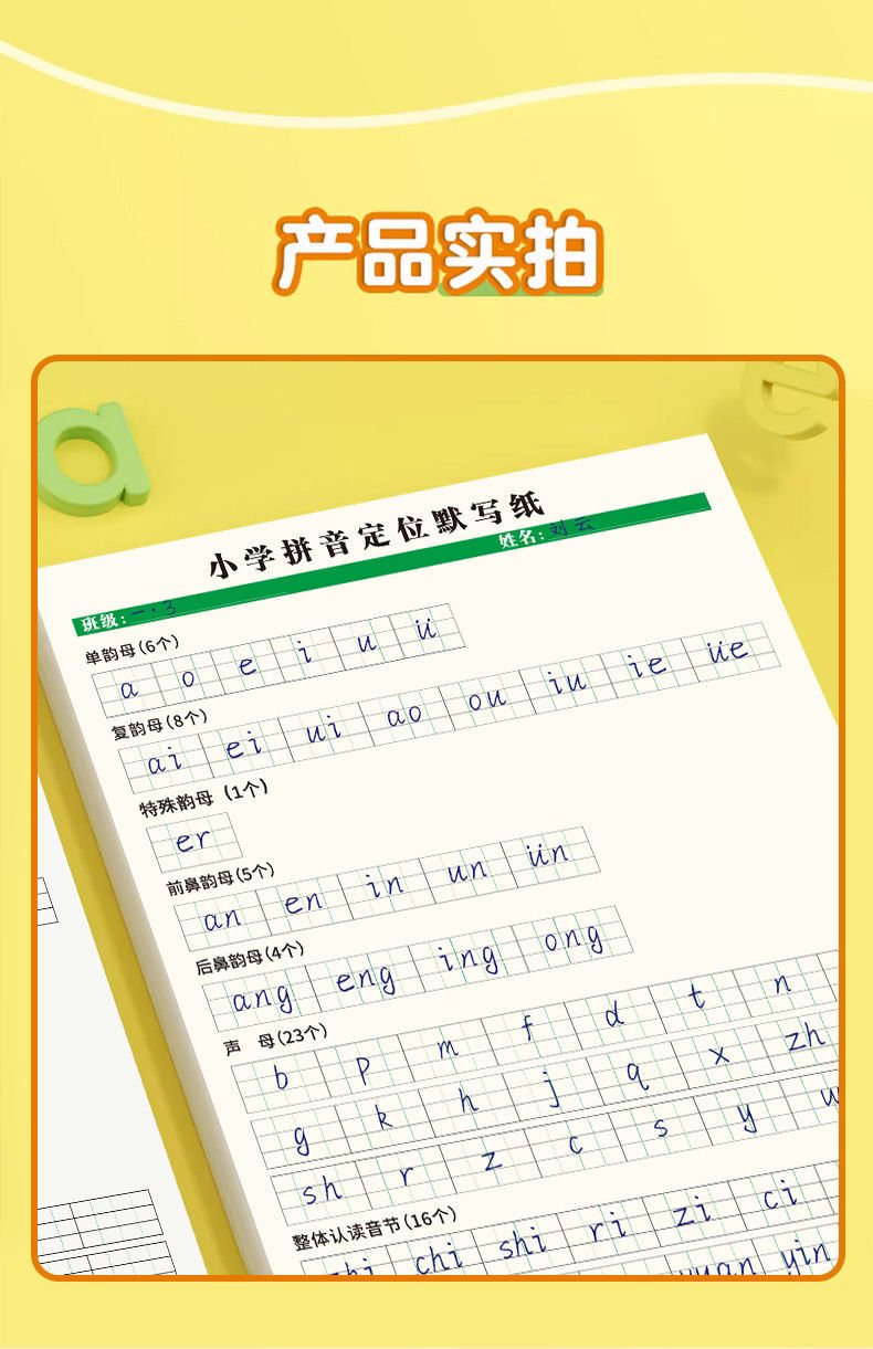 拼音定位默写学前班一年级汉英拼音声母韵母描红练习纸认读复印纸