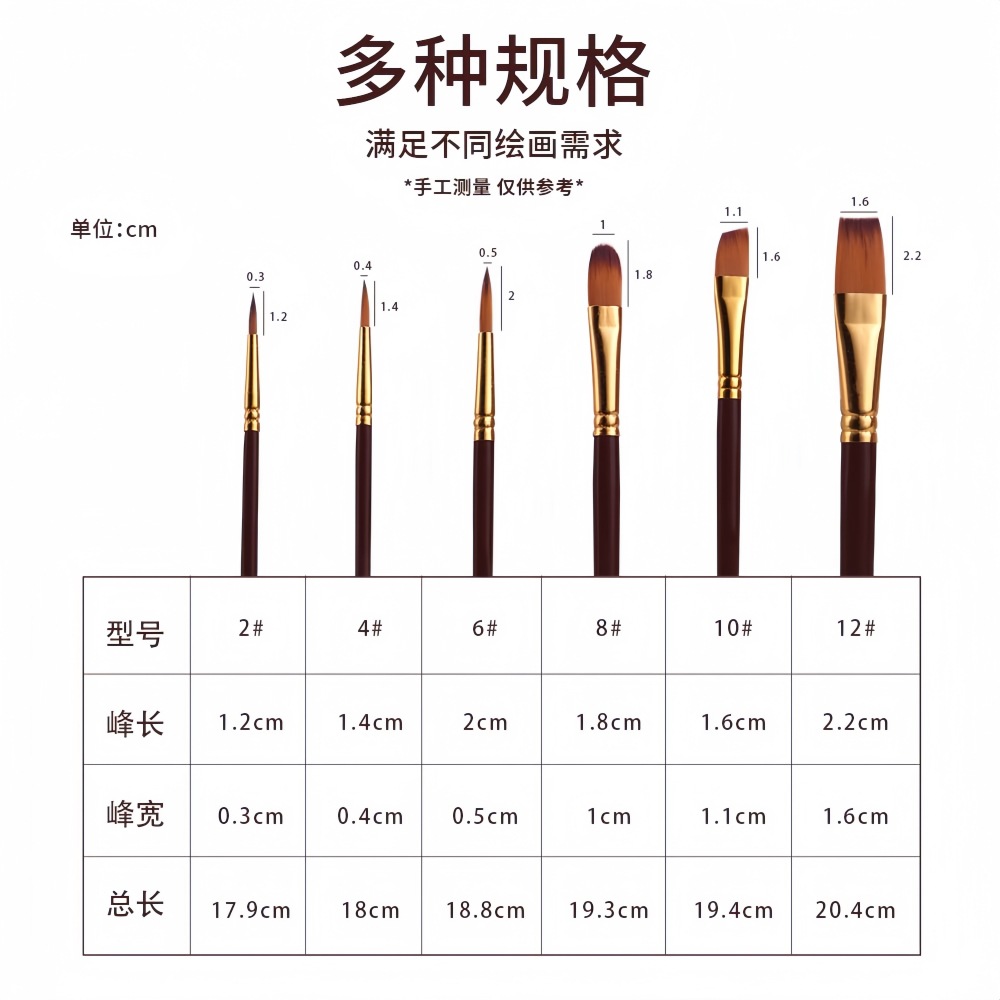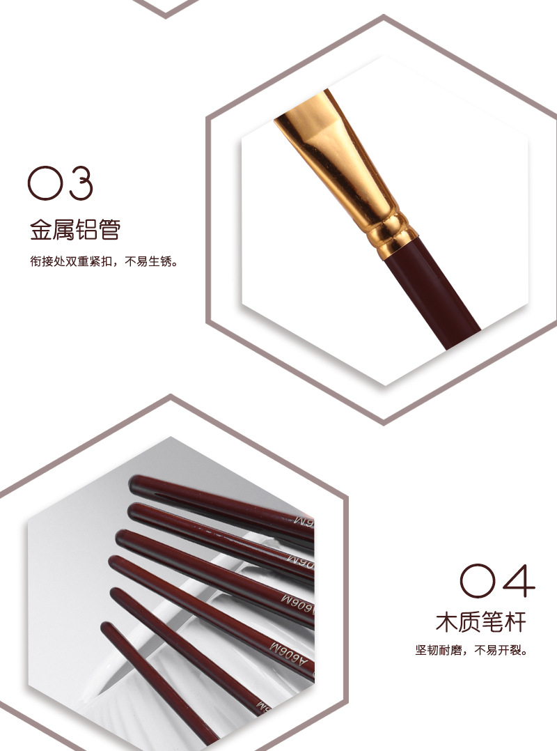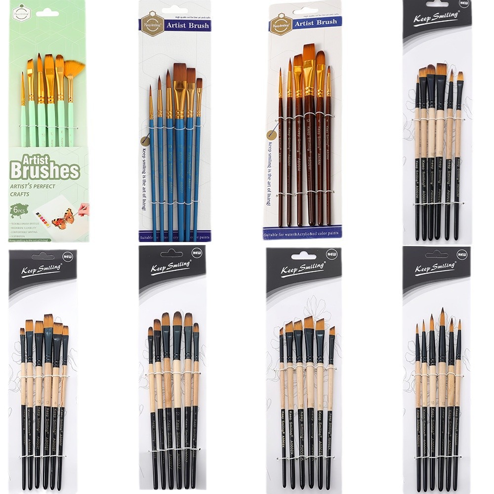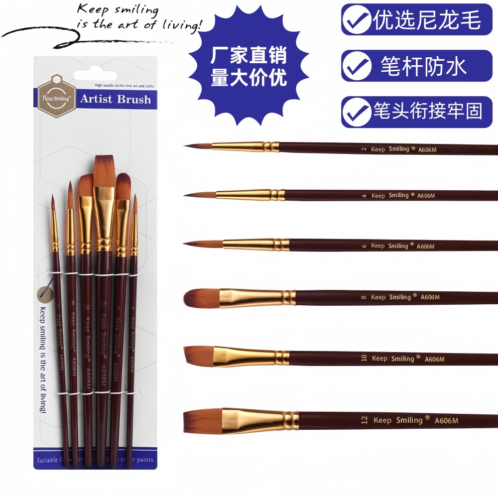 6支多功能水彩画笔绘画套装尼龙毛数字油画笔儿童diy涂鸦美术用品