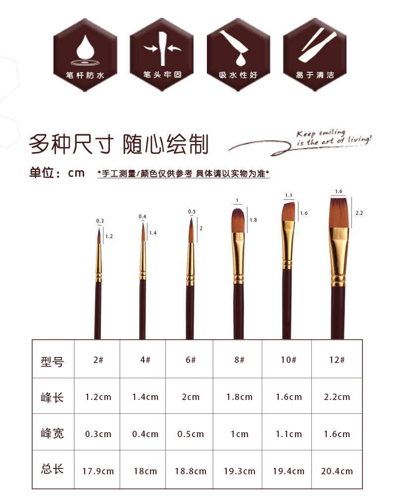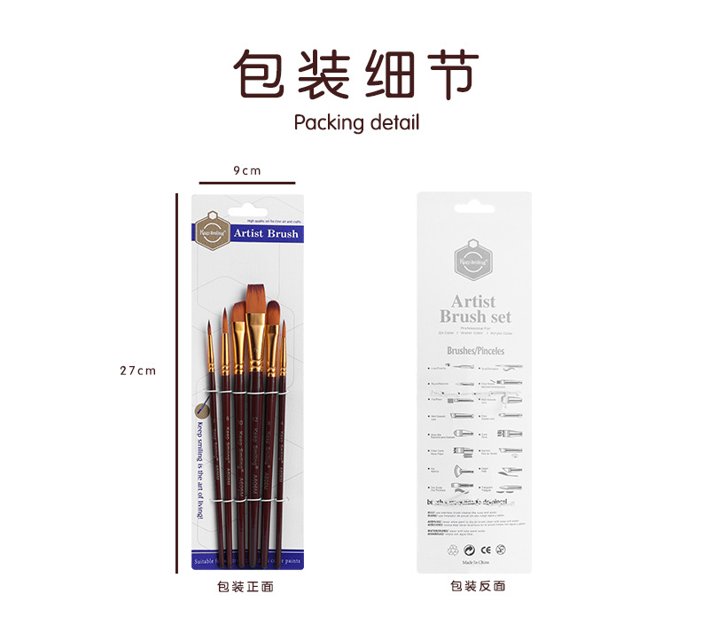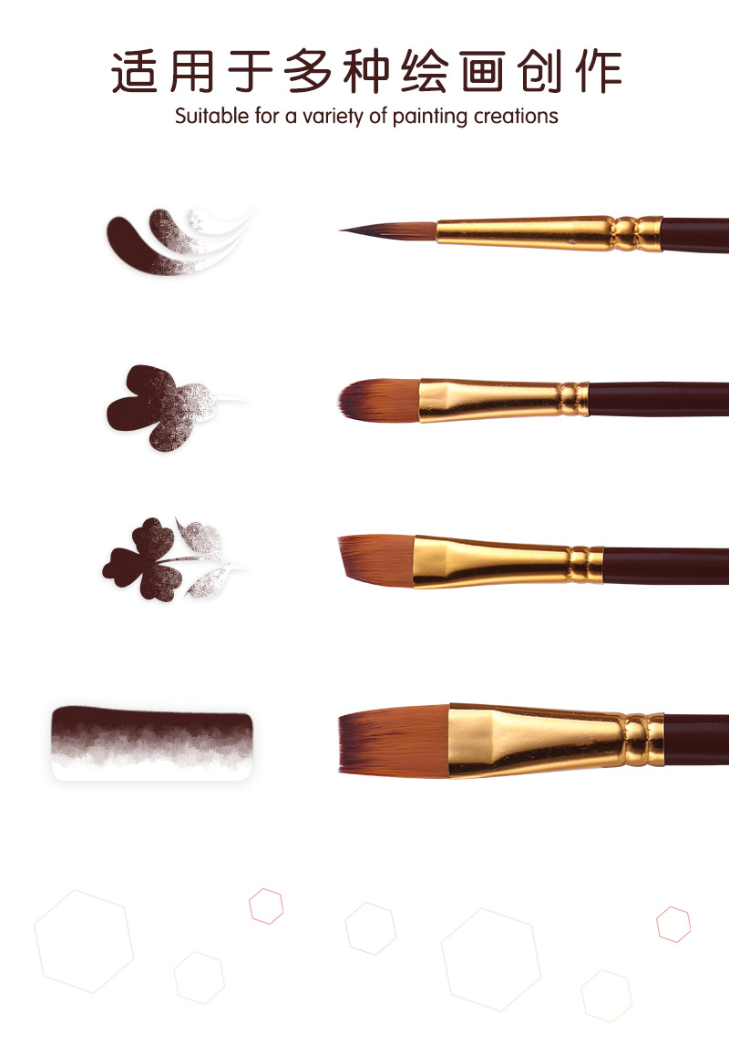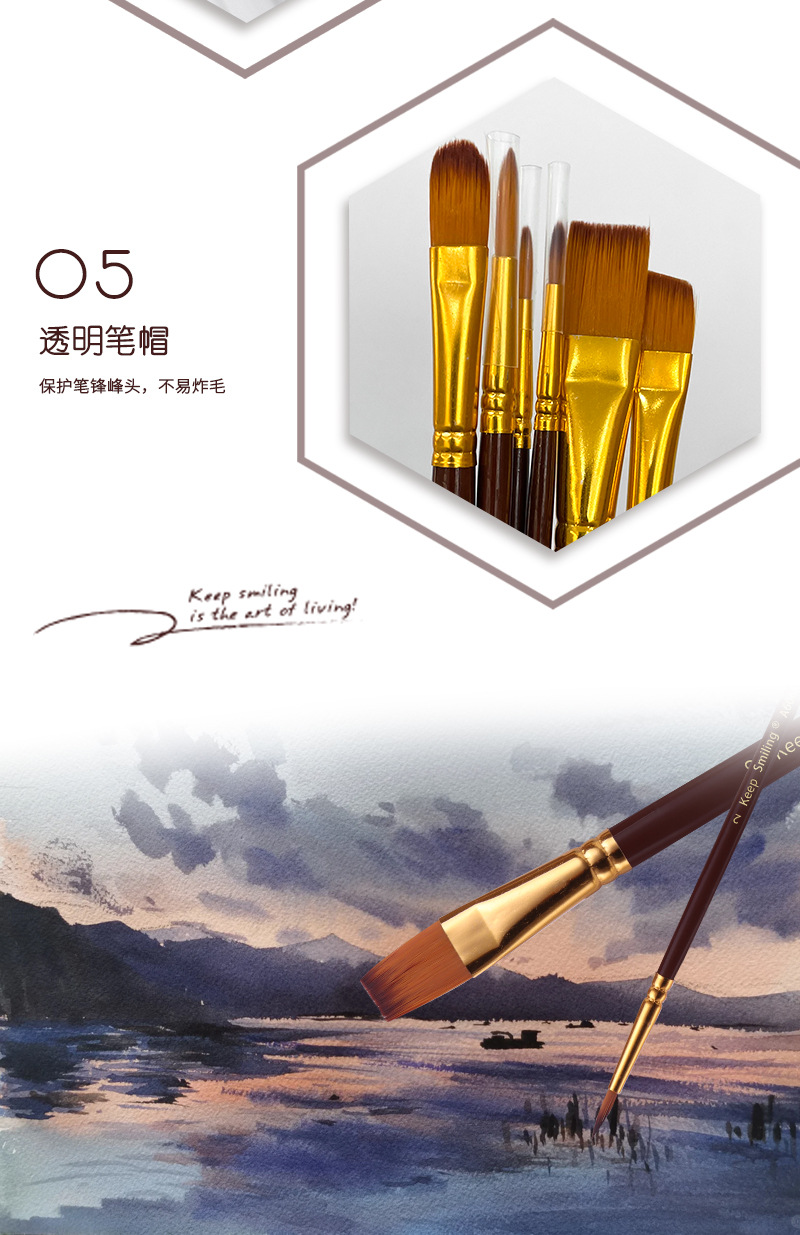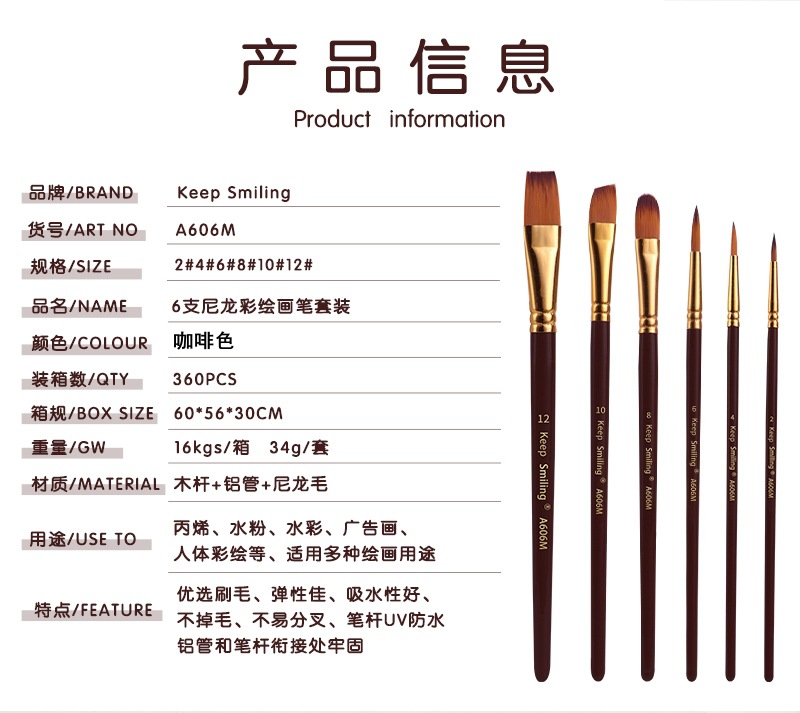 6支多功能水彩画笔绘画套装尼龙毛数字油画笔儿童diy涂鸦美术用品