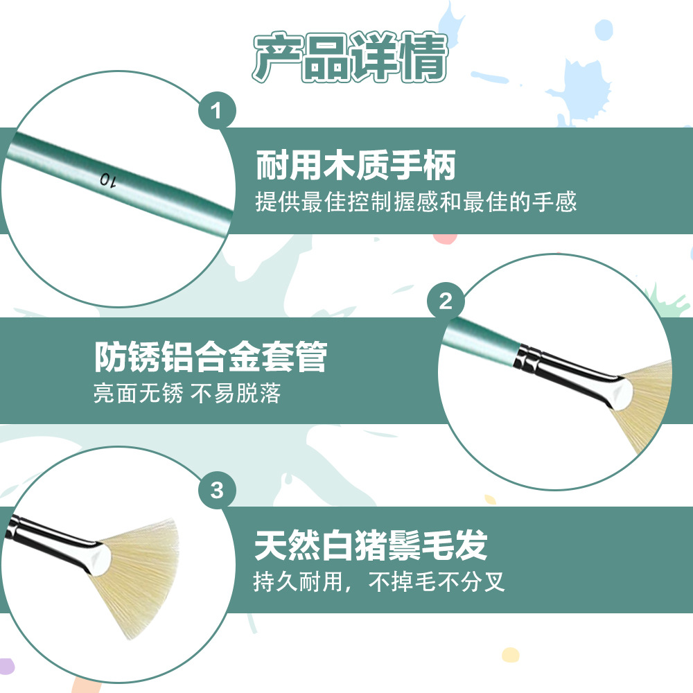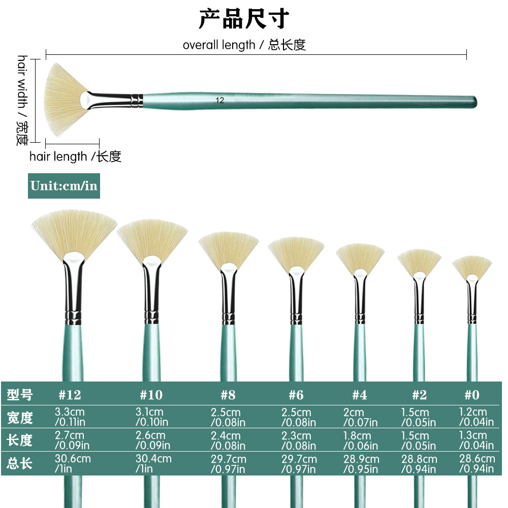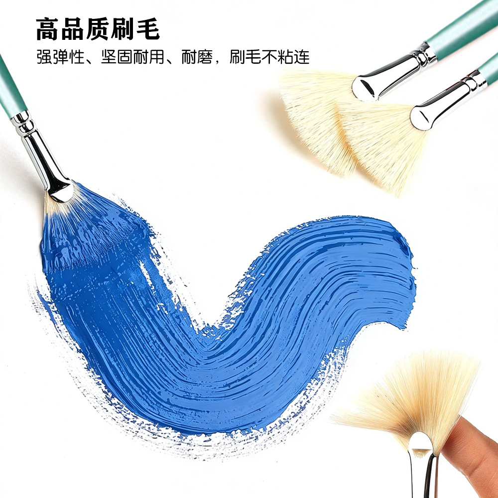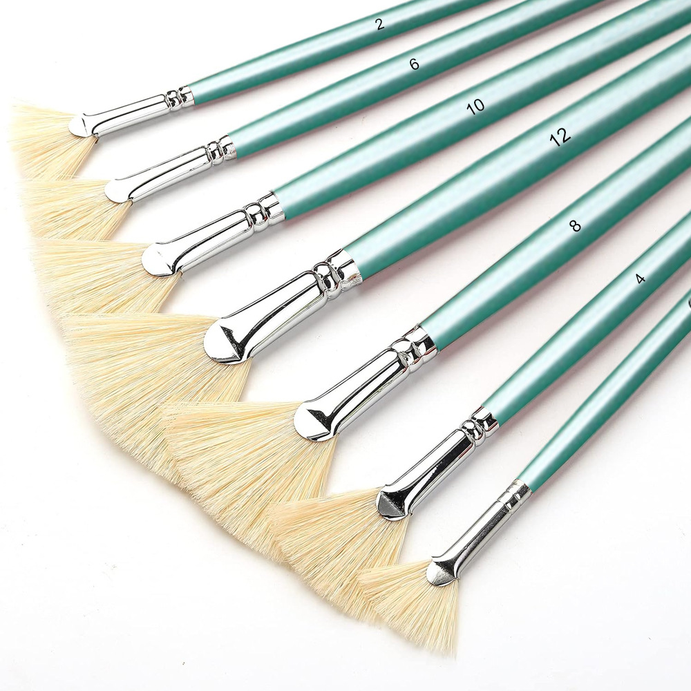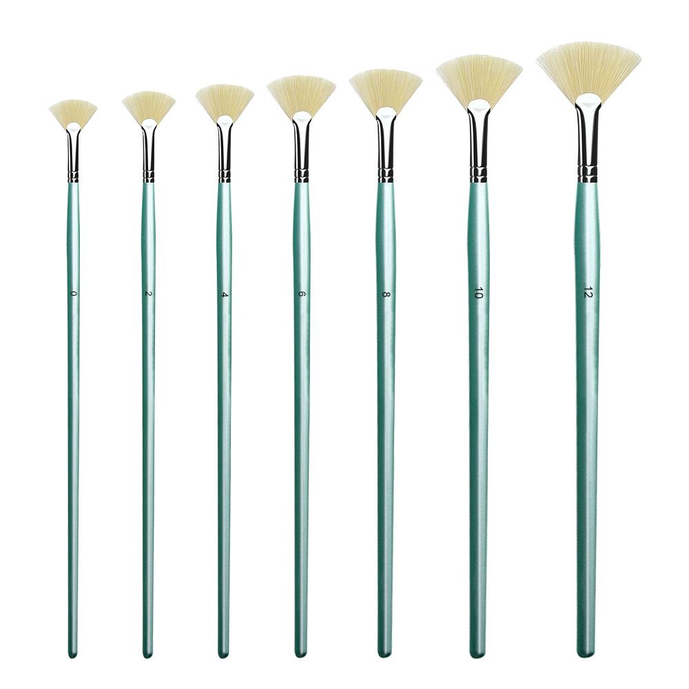 跨境画笔猪鬓毛水粉扇形画笔7支装 丙烯油画笔扇形水彩笔鱼尾排笔