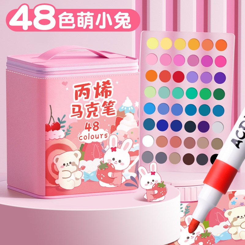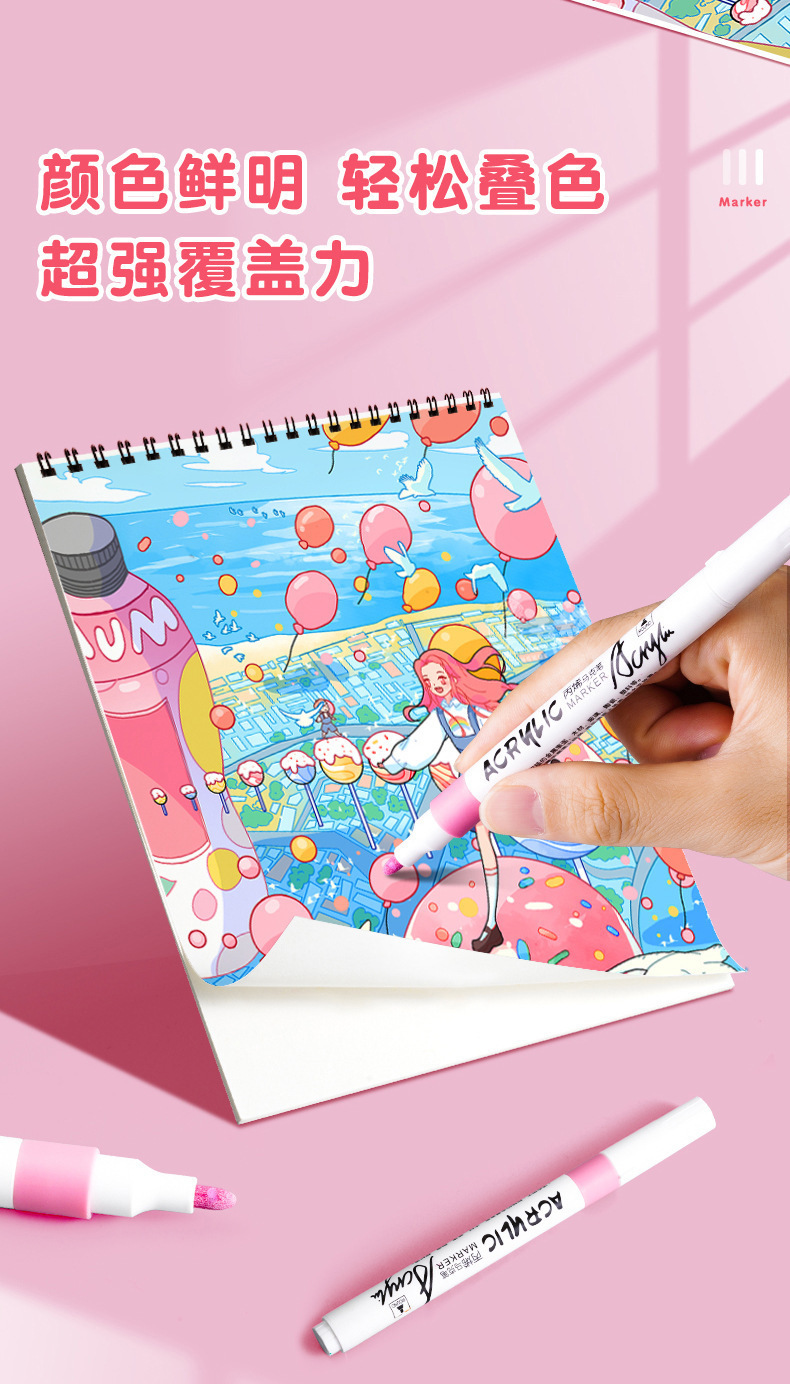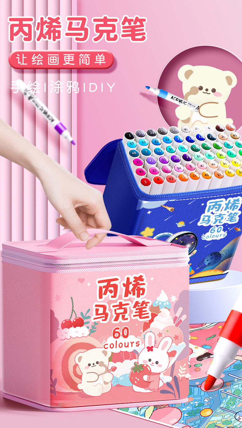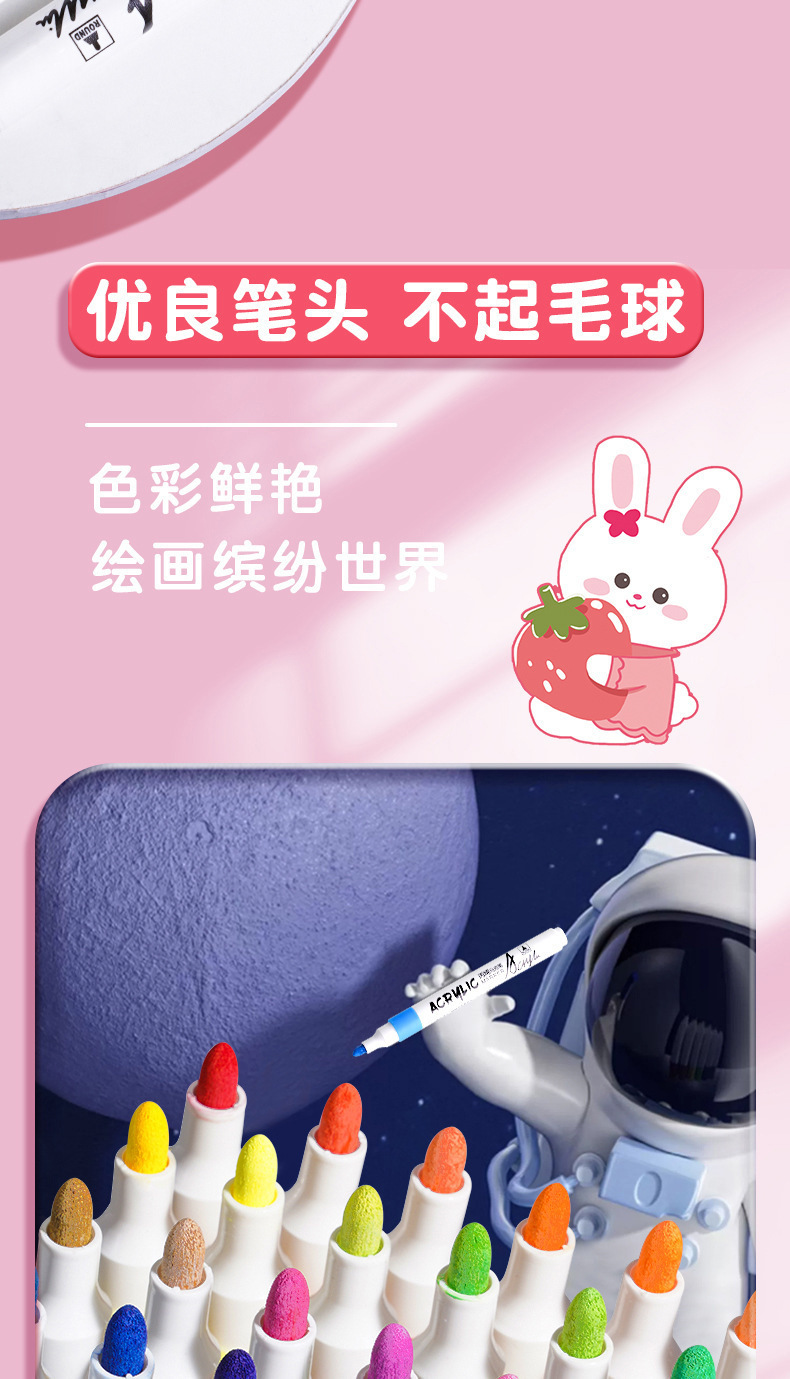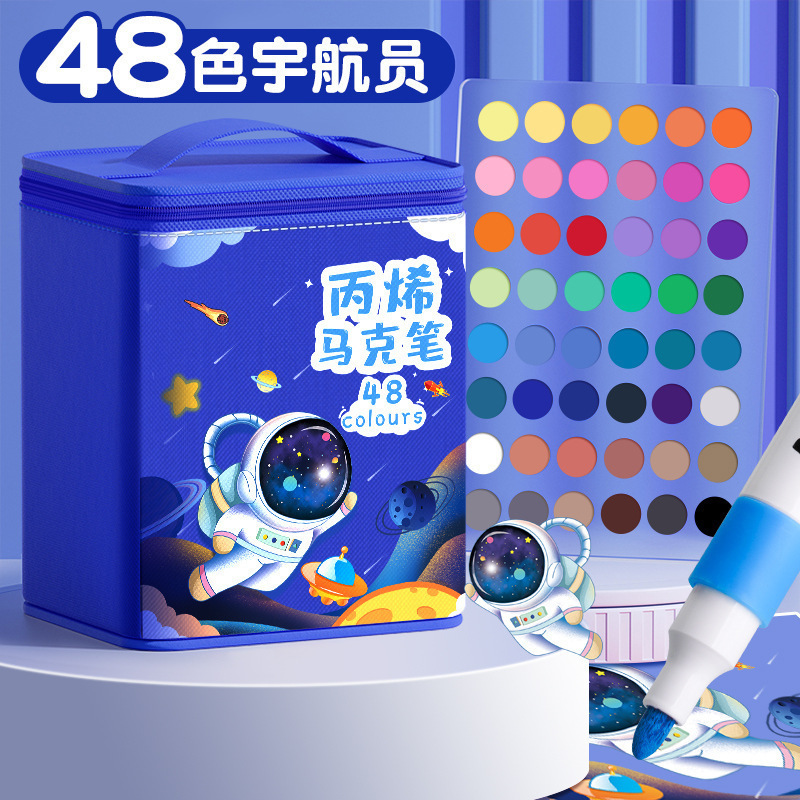 太空人丙烯马克笔儿童美术涂鸦笔不透色防水笔水洗水彩笔布袋