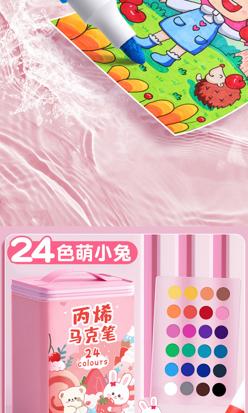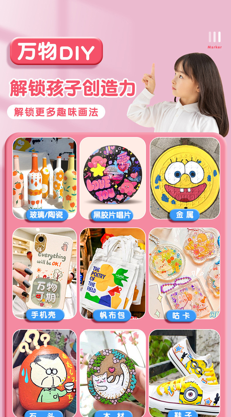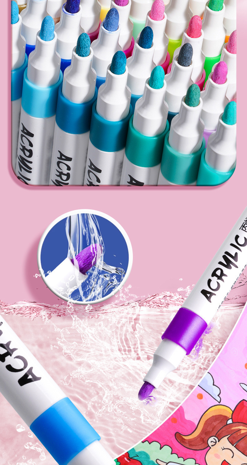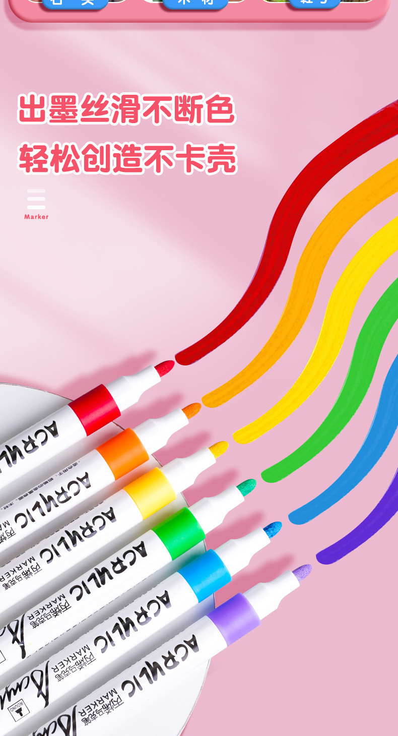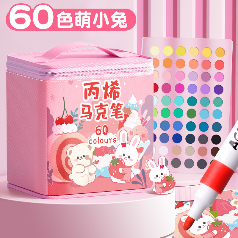 太空人丙烯马克笔儿童美术涂鸦笔不透色防水笔水洗水彩笔布袋