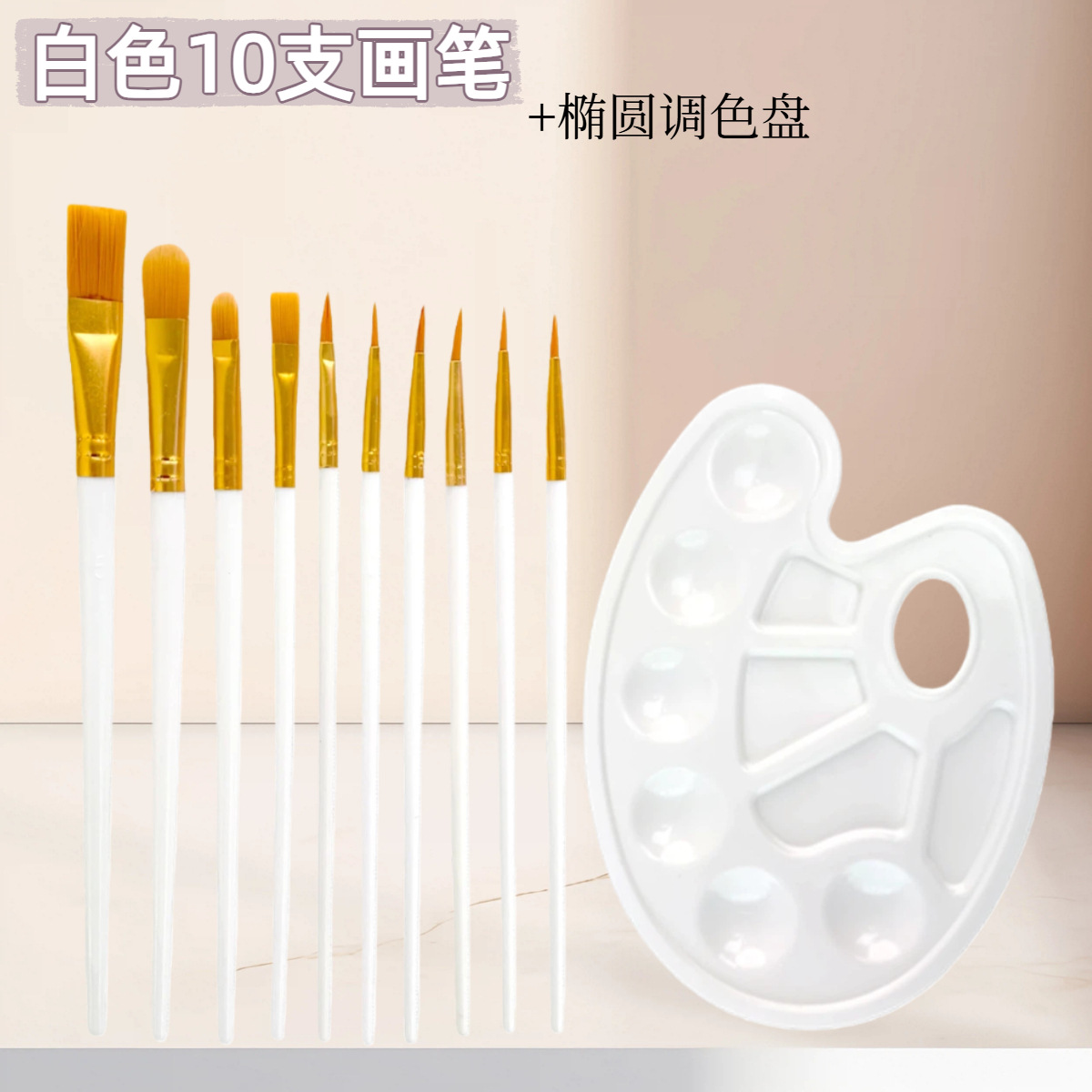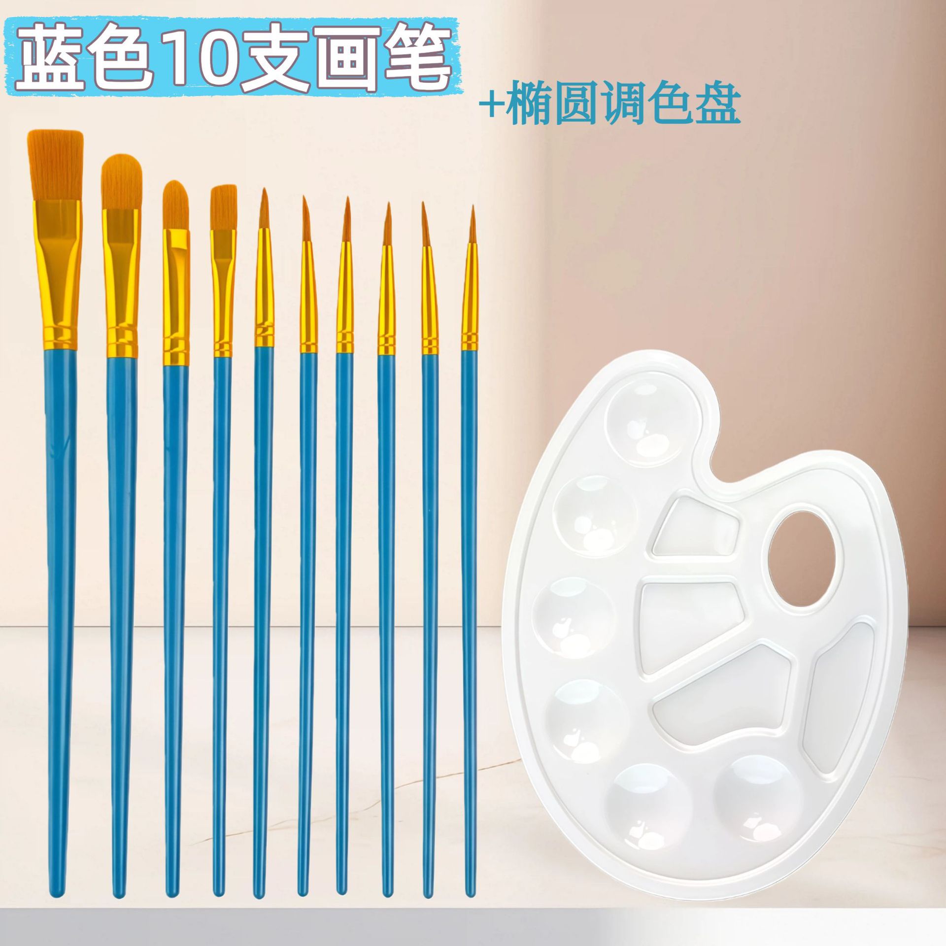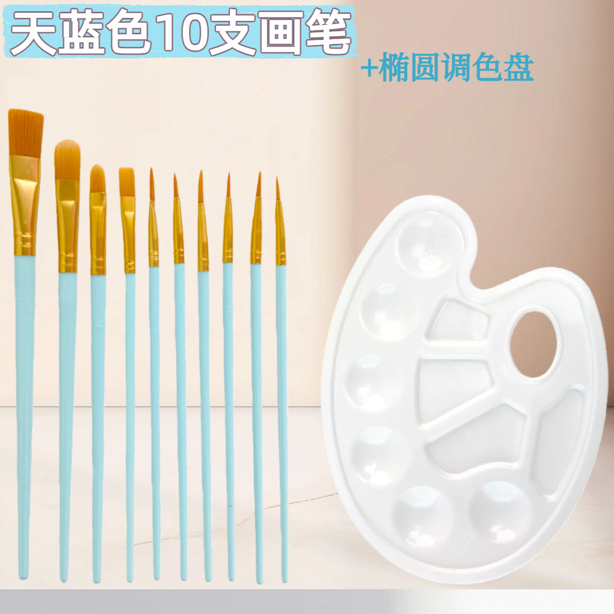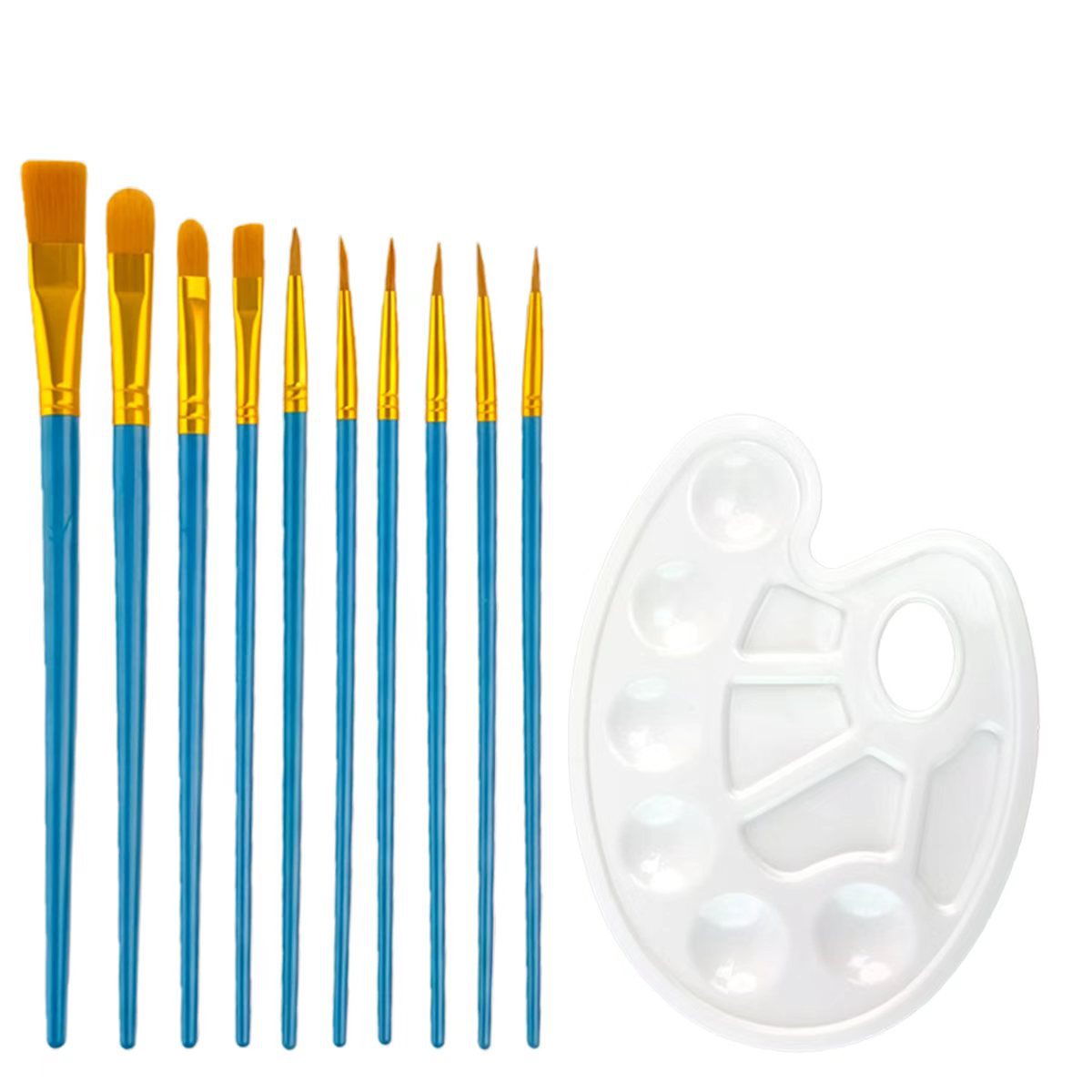 10支尼龙毛水彩画笔调色盘套装 初学者水粉丙烯排笔刷美术勾线笔