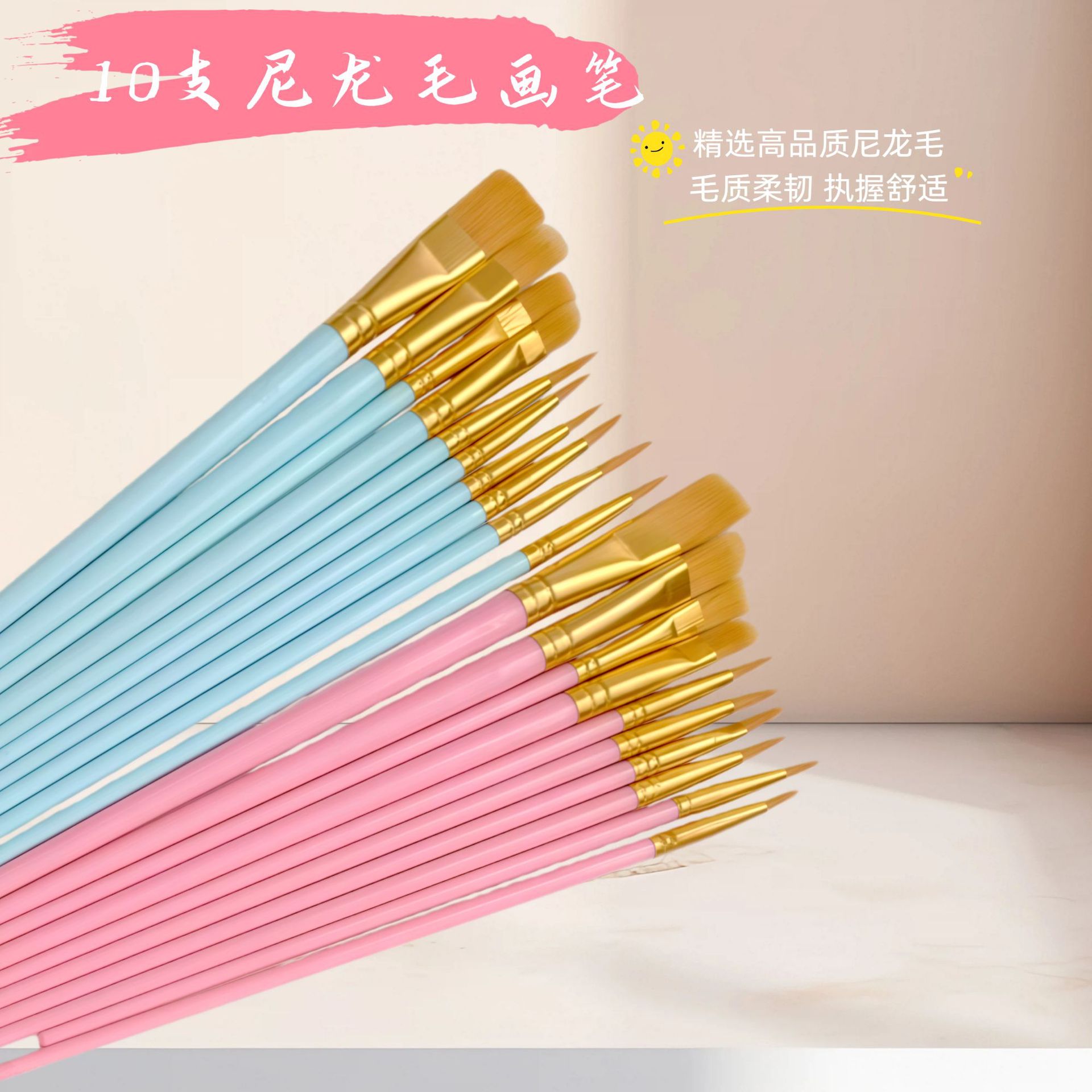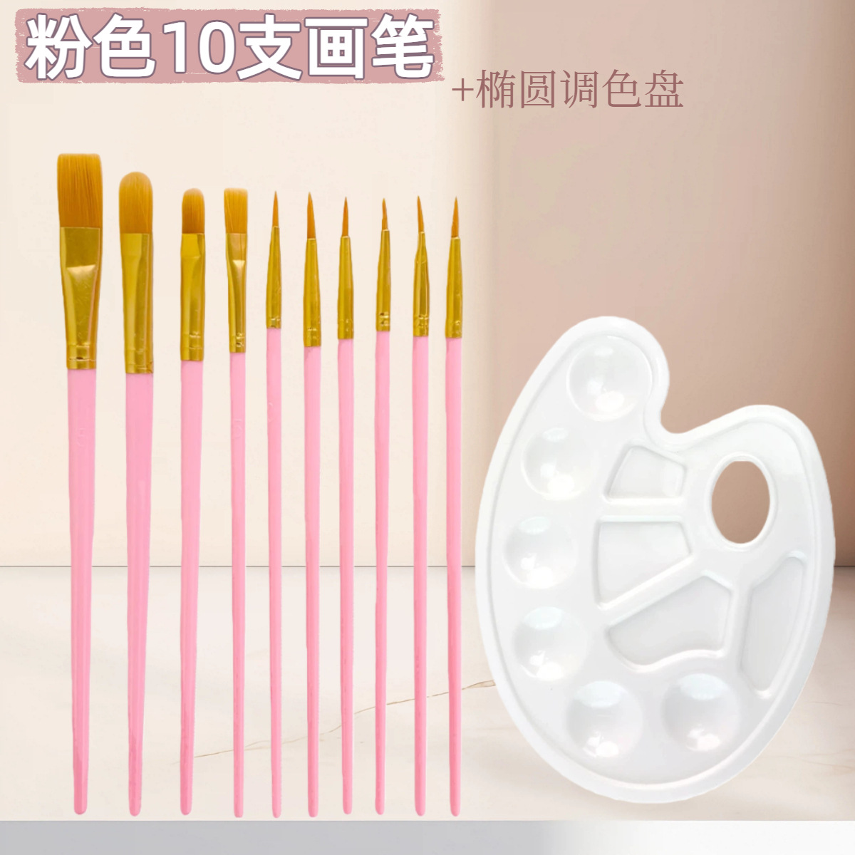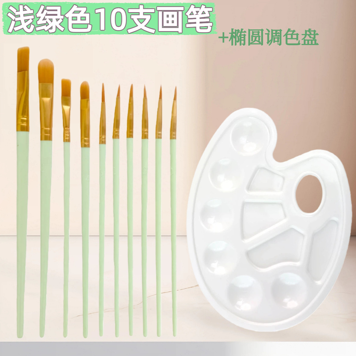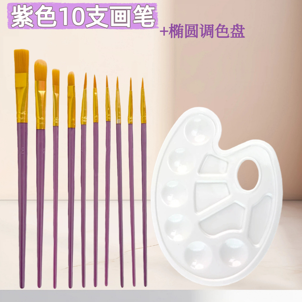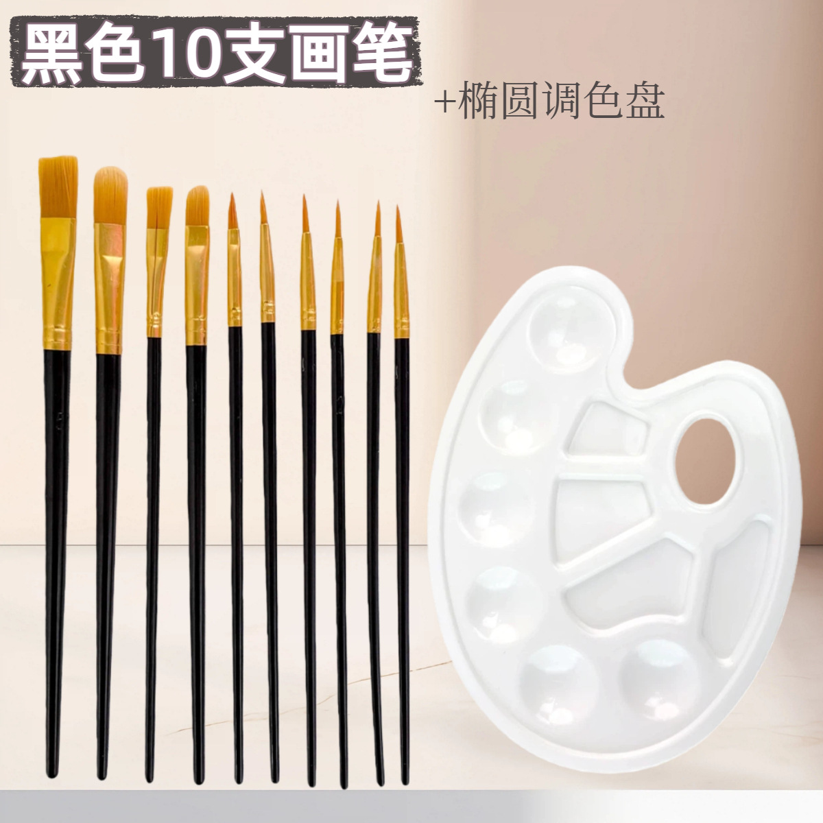 10支尼龙毛水彩画笔调色盘套装 初学者水粉丙烯排笔刷美术勾线笔