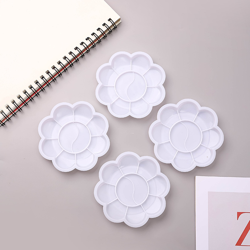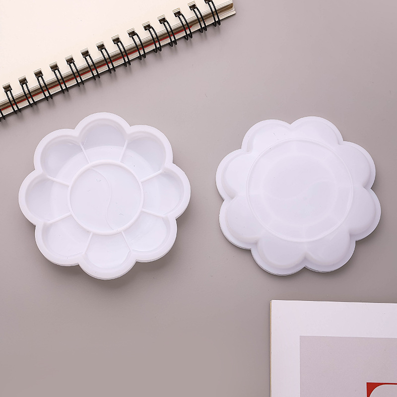 厂供PP料水彩调色盘颜料盘国画调色盒加厚梅花盘儿童DIY调色碟