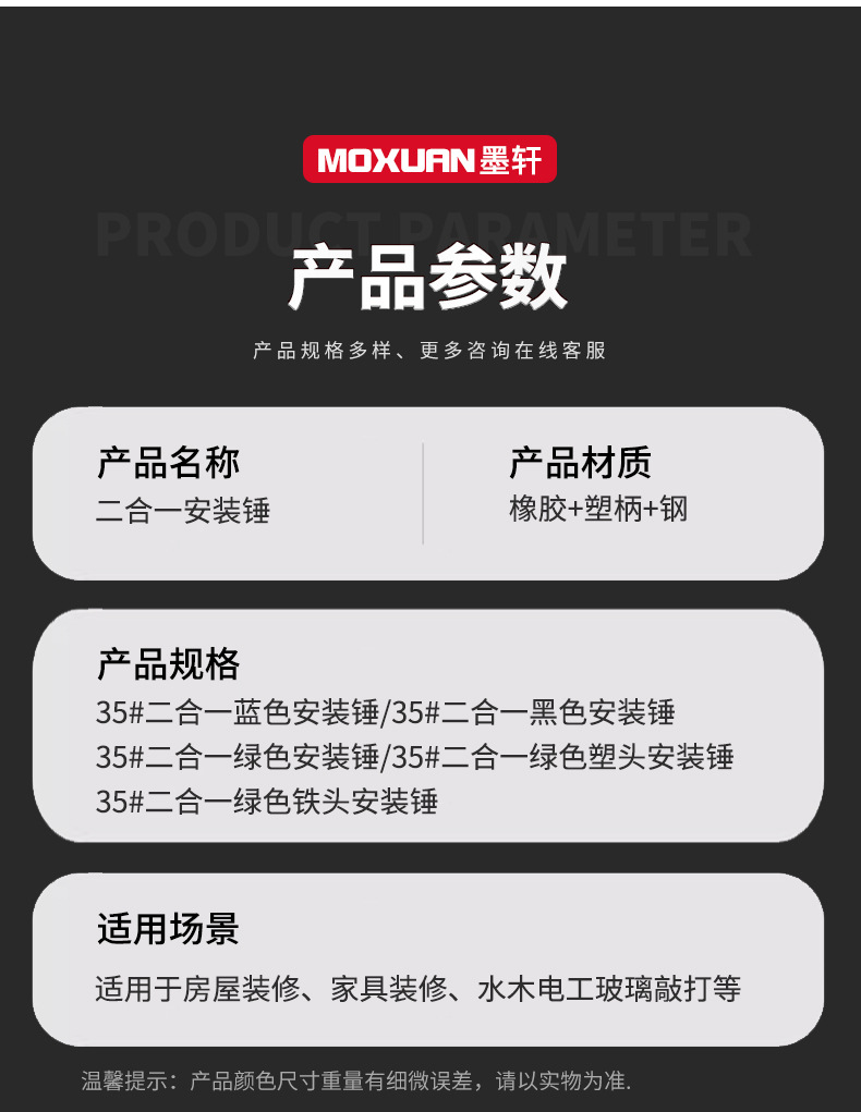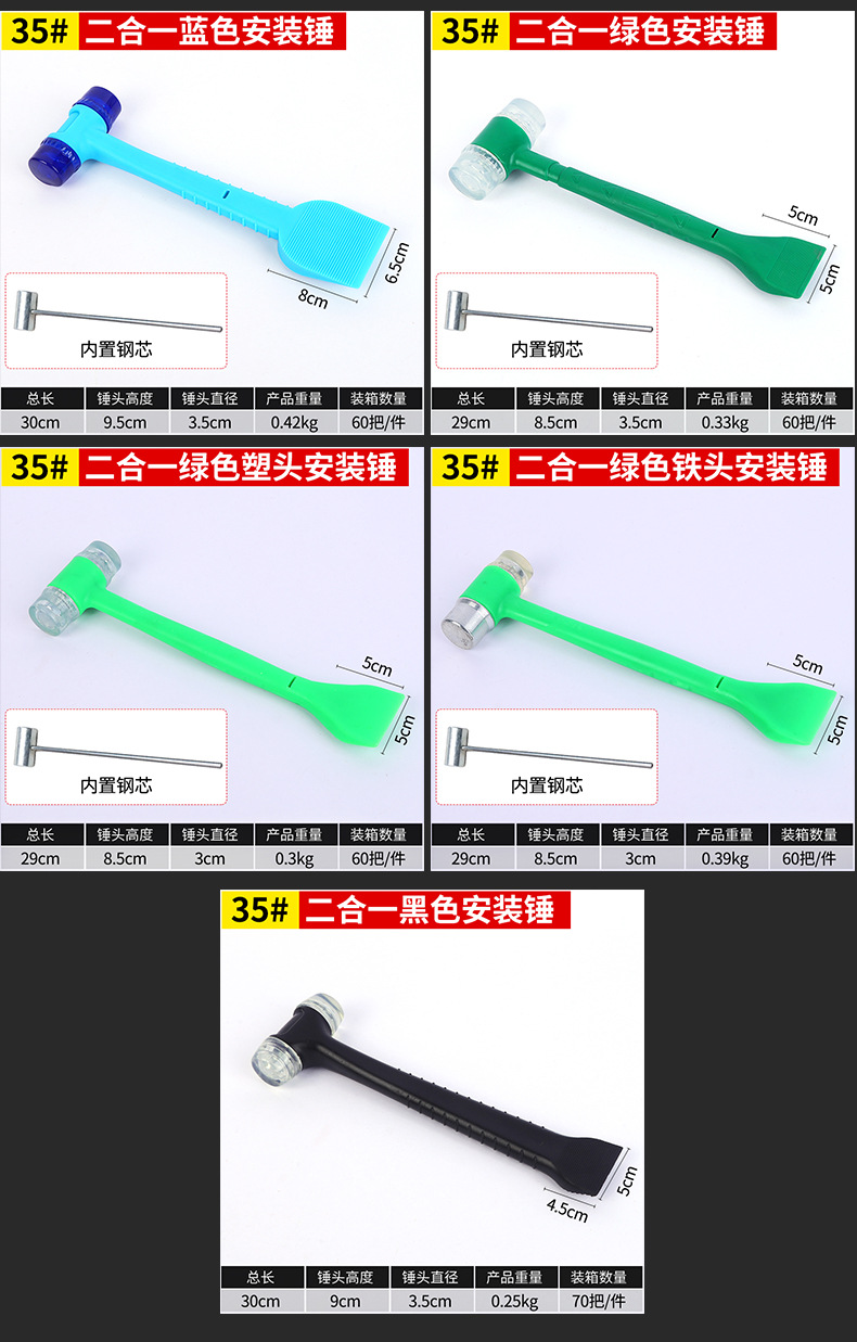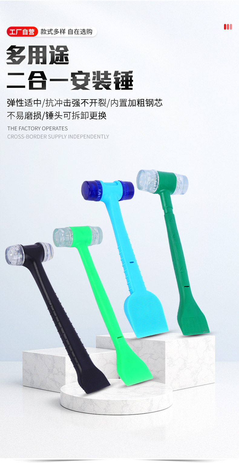 多功能橡胶锤门窗玻璃组装安装锤木工地板塑胶锤二合一实心橡胶锤