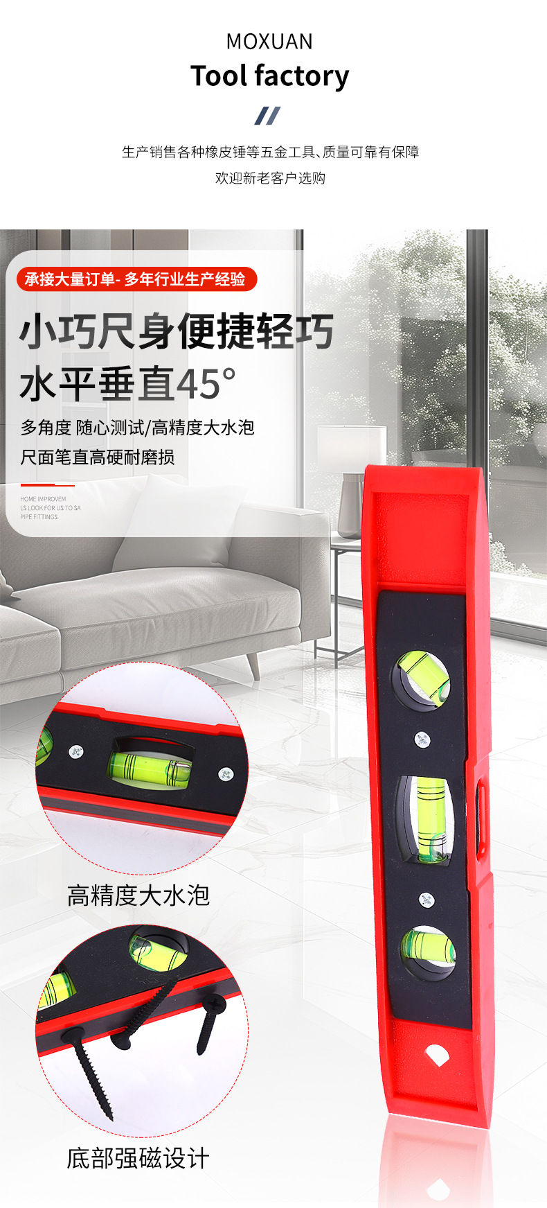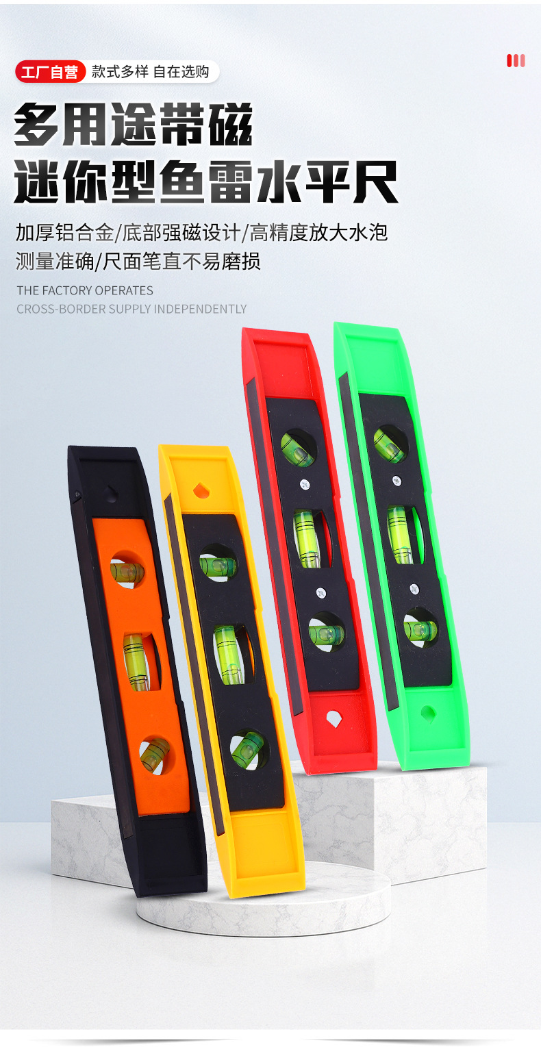 跨境迷你鱼雷水平尺带磁性测量水平尺小型平衡尺水平仪测量工具