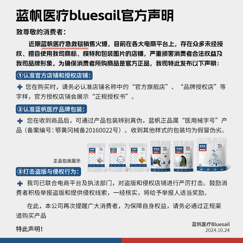 蓝帆急救毯户外防水保命救生毯野外生存应急装备便携压缩地震保温