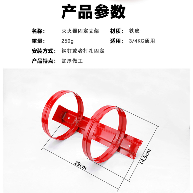 2kg4kg支架双挂架挂钩挂具固定支架车载固定灭火器红色铁挂架