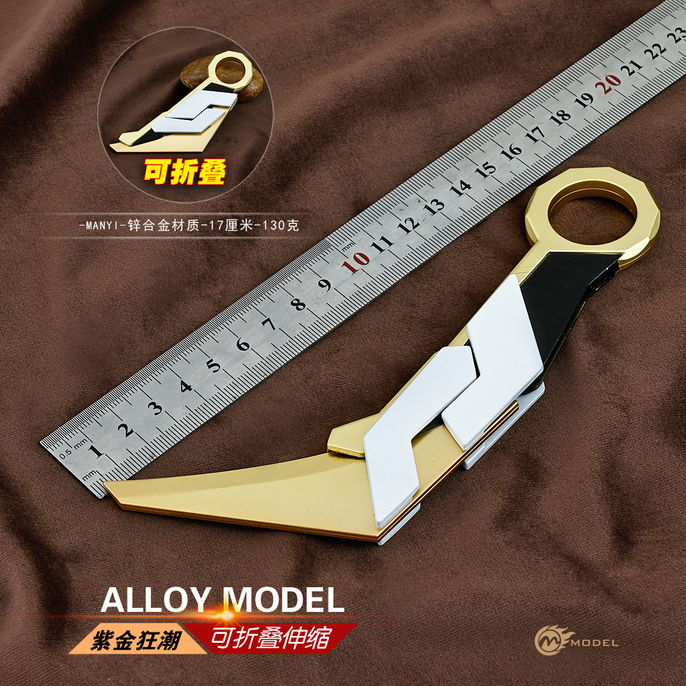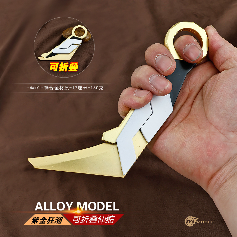瓦罗兰特游戏周边紫金狂潮爪刀17cm折叠皮套版武器模型金属工艺品