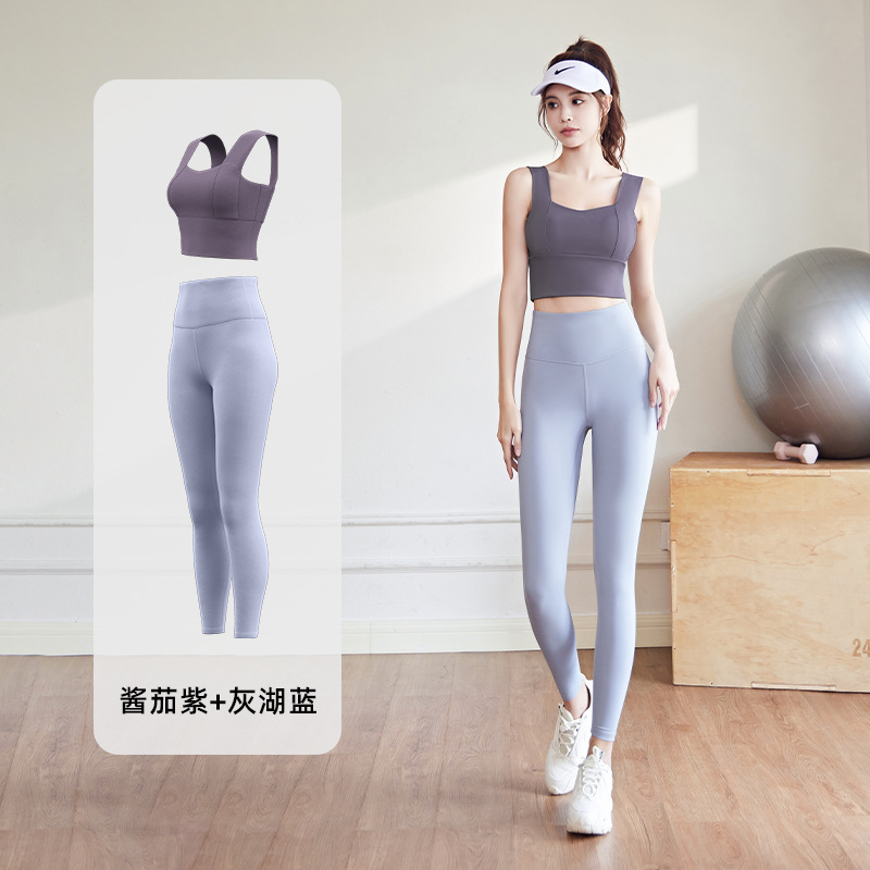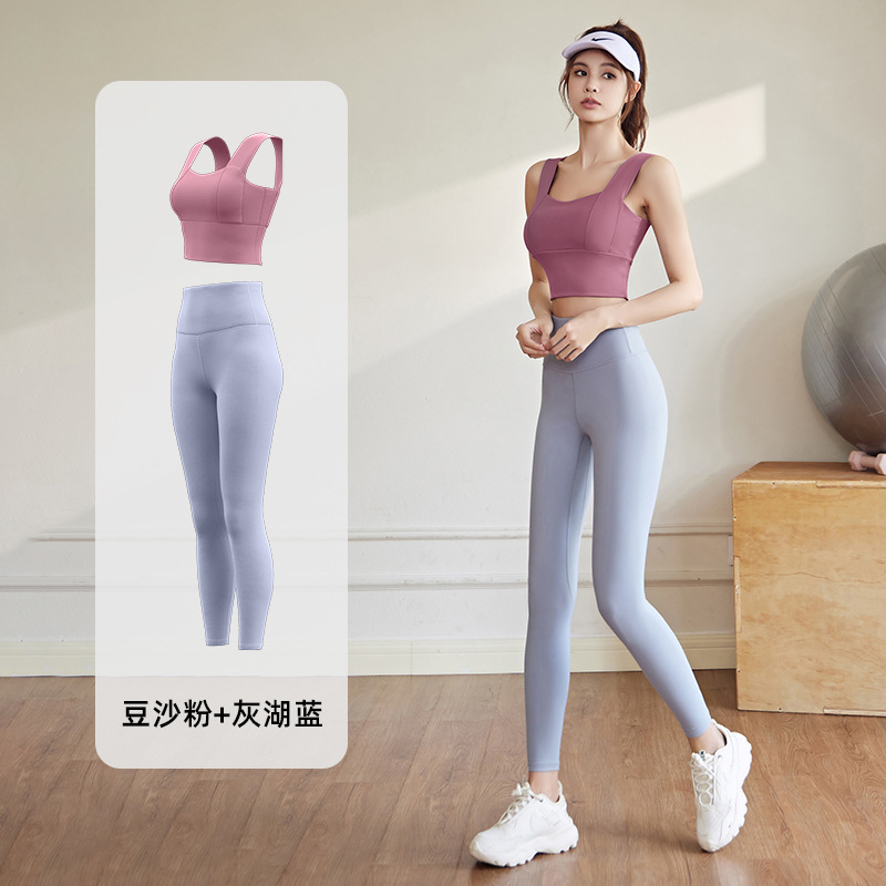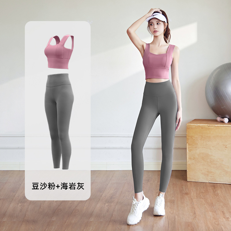 聚衣堂蜜桃基础瑜伽套装防震固定中强度运动套装室内跑步健身套装
