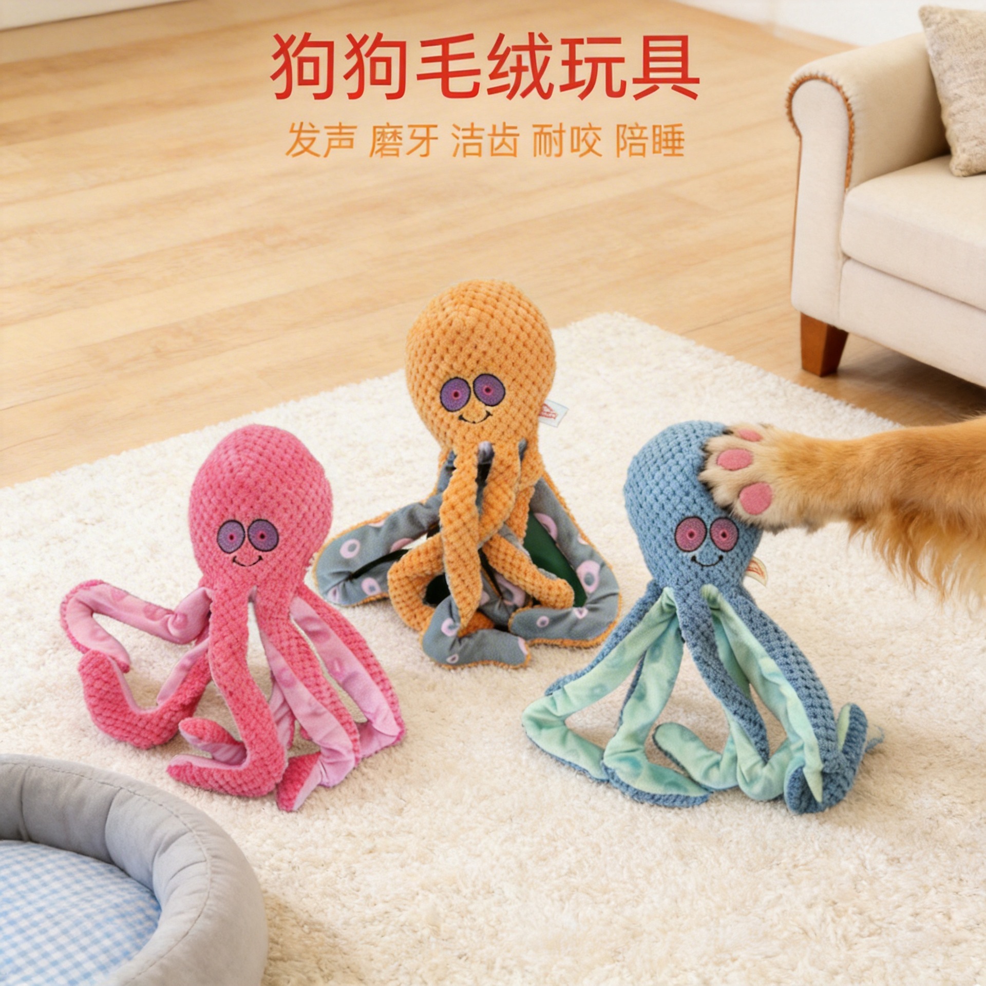 跨境宠物玩具狗狗玩具毛绒材质仿真响纸章鱼造型玩具陪伴小狗互动