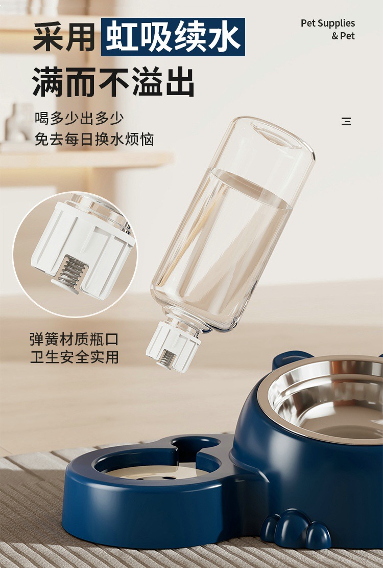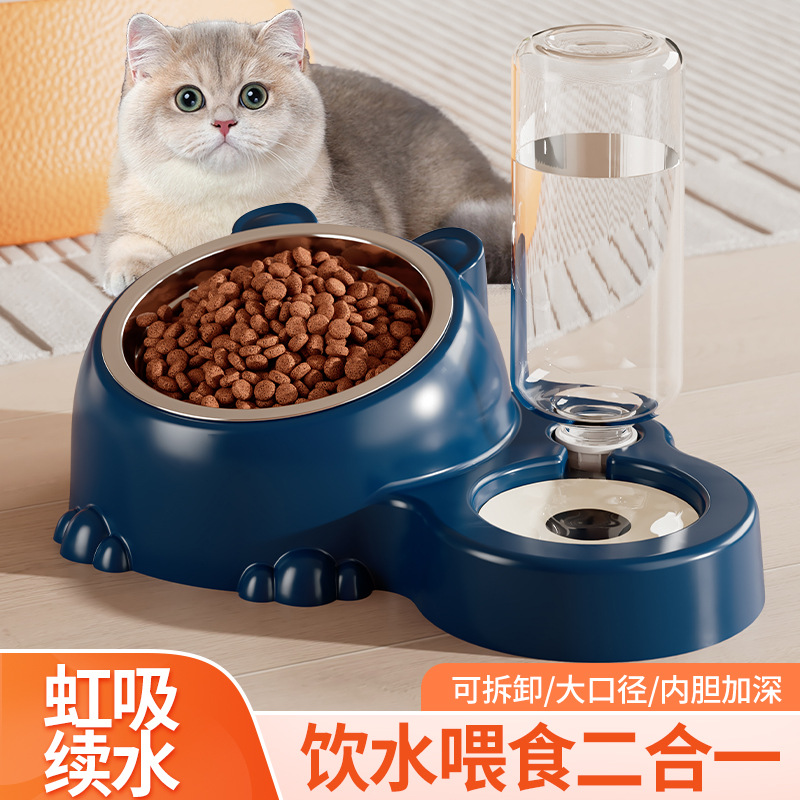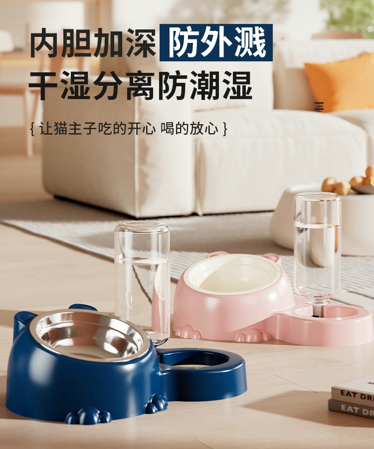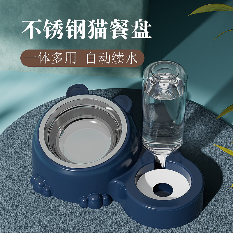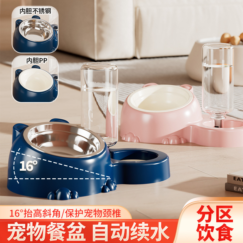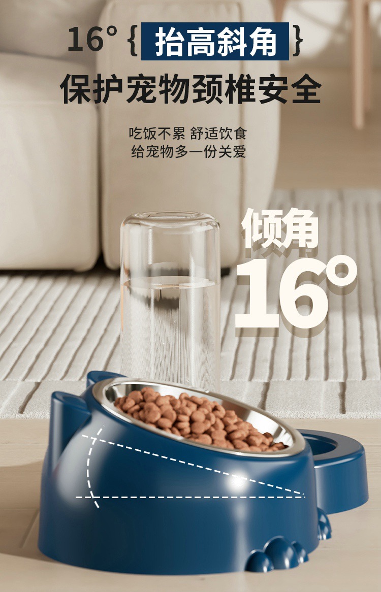 宠物餐盘不锈钢自动续水喝斜口喂猫器防打翻冻干粮猫碗喂食器喂水