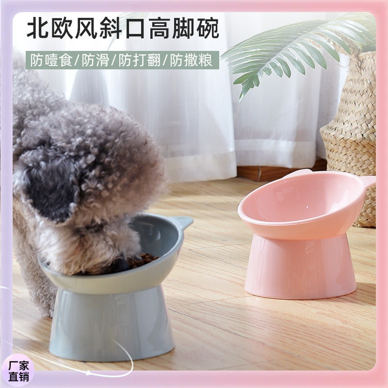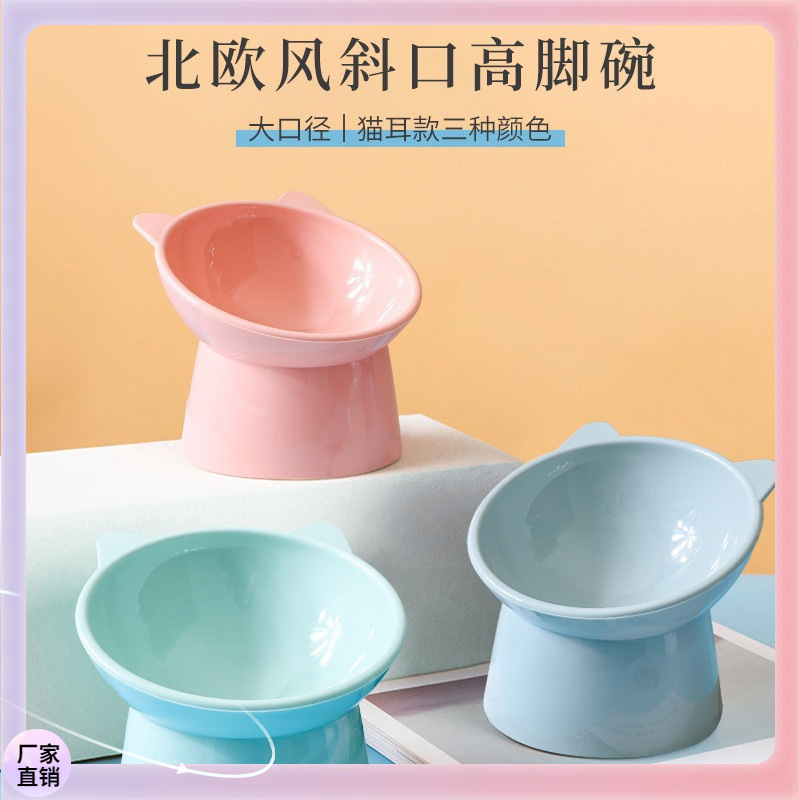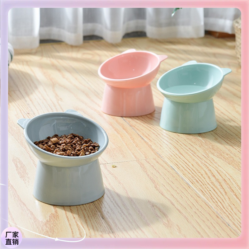 猫碗高脚护颈斜口碗喂猫粮碗宠物食具 狗狗猫咪食盆防打翻宠物