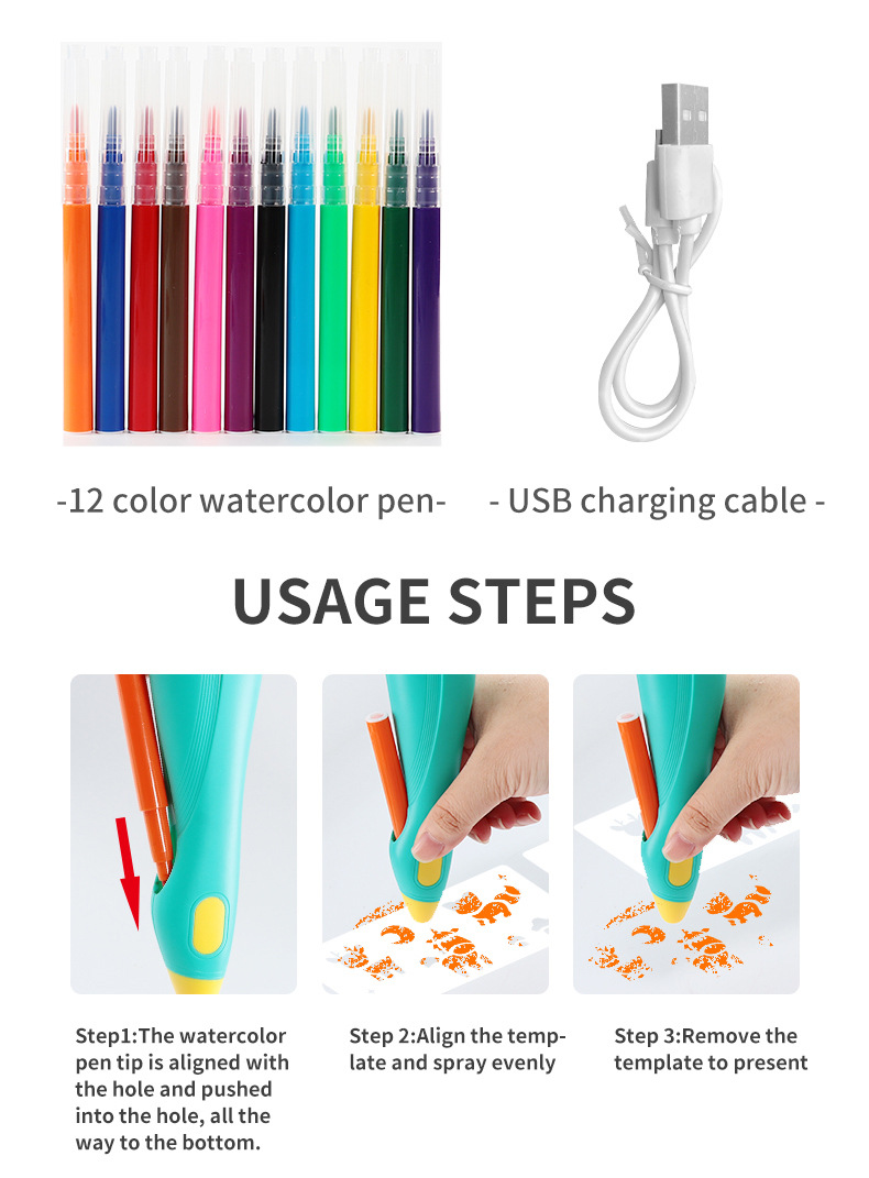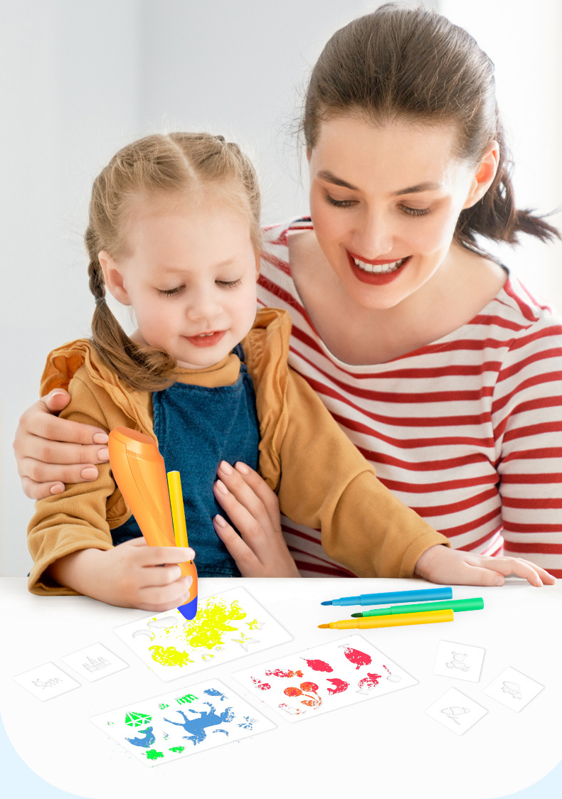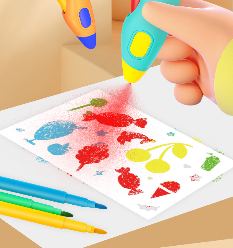 跨境儿童喷绘笔玩具可水洗画笔彩笔儿童绘画工具涂鸦儿童玩具