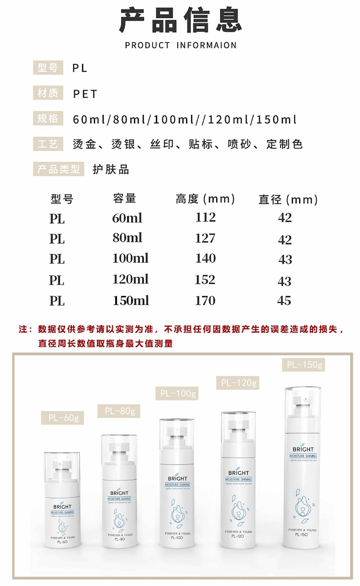 跃华 PET新品150ml护肤乳液瓶精华液爽肤水按压瓶化妆品包材