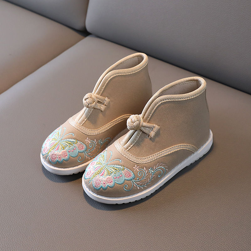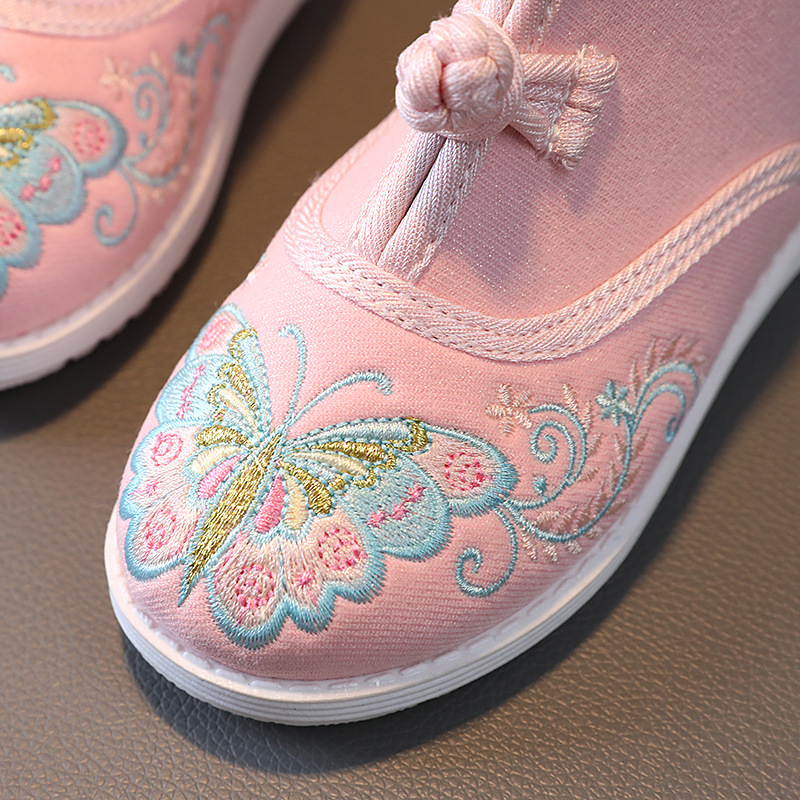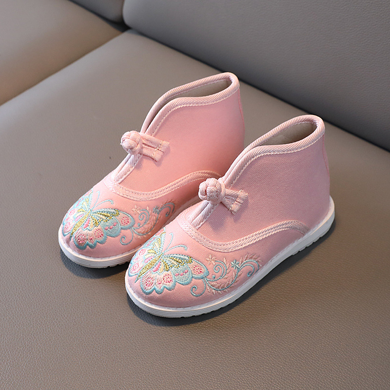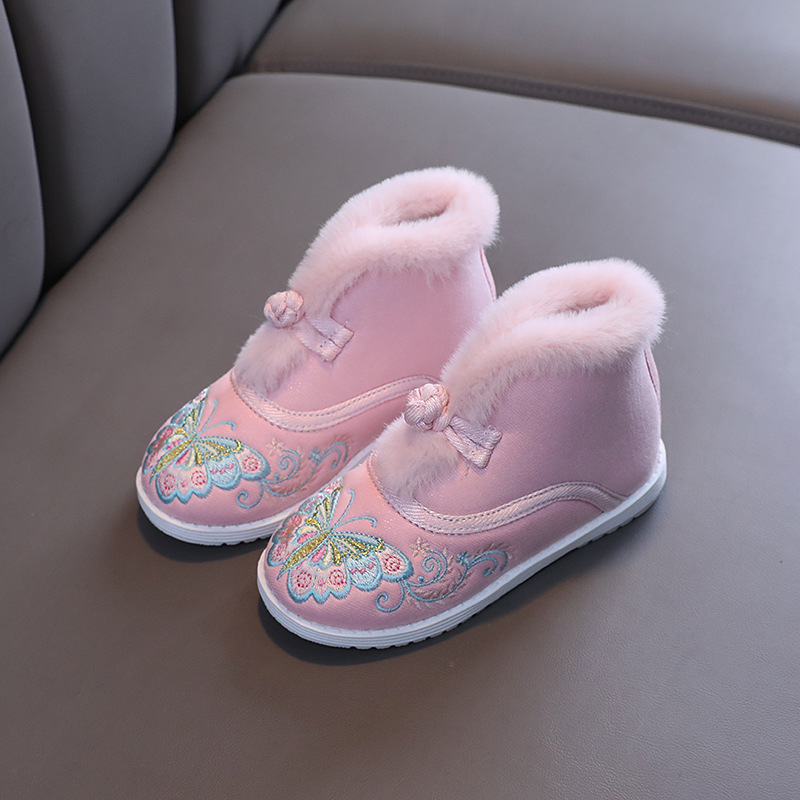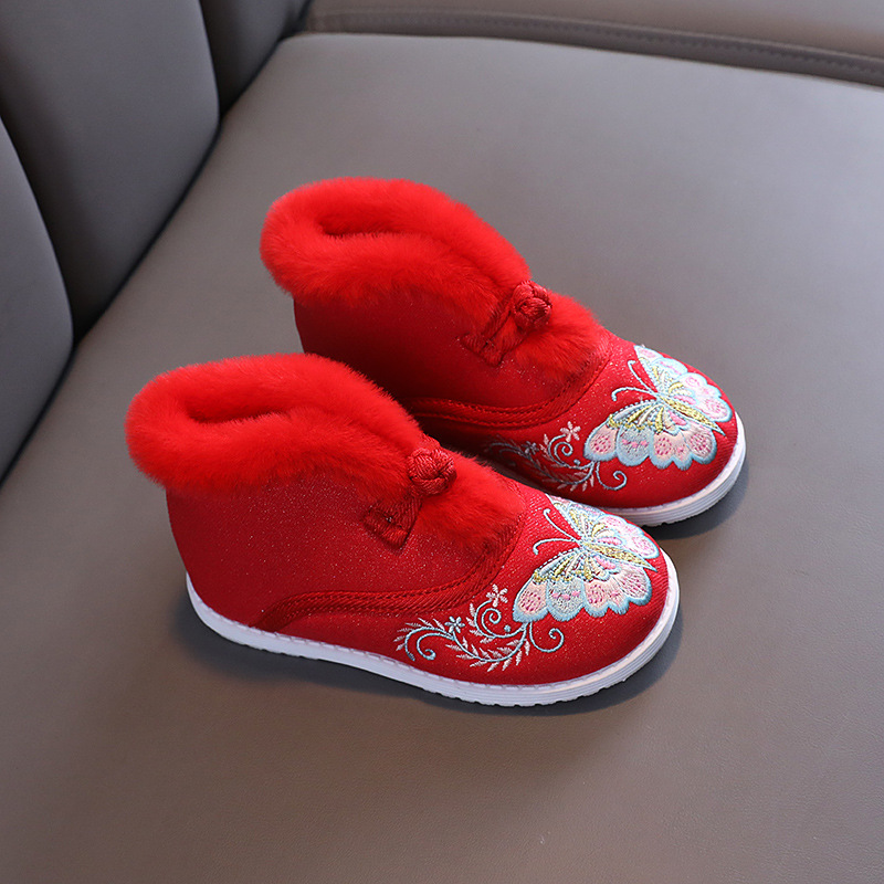 汉服鞋女童绣花鞋短靴中国风刺绣民族风秋冬加绒儿童年服鞋拜年鞋
