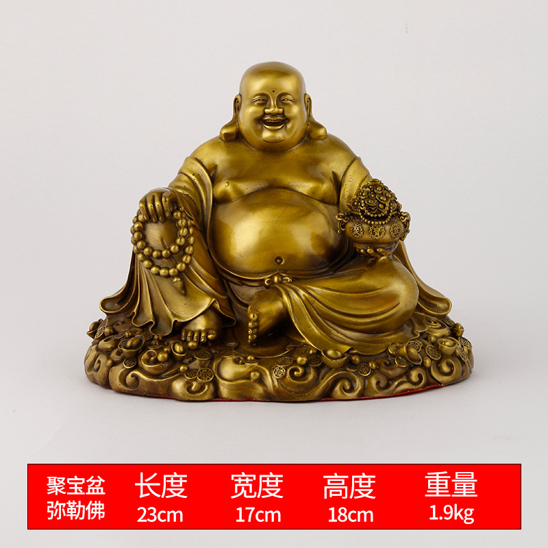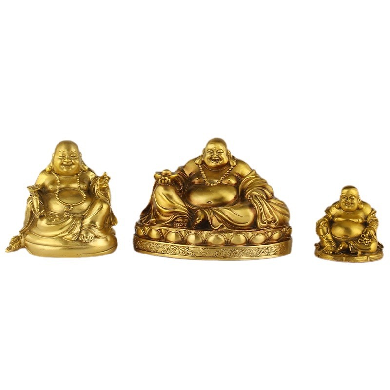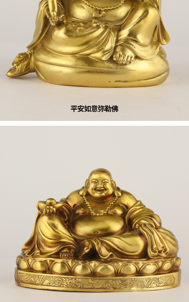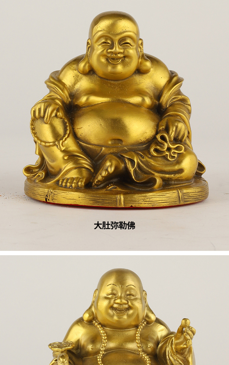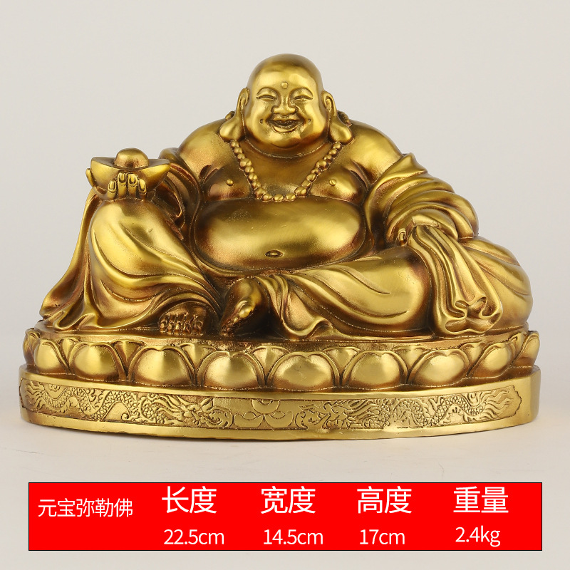 厂家批发黄铜弥勒佛笑脸佛托元宝佛圆佛莲花底座摆件