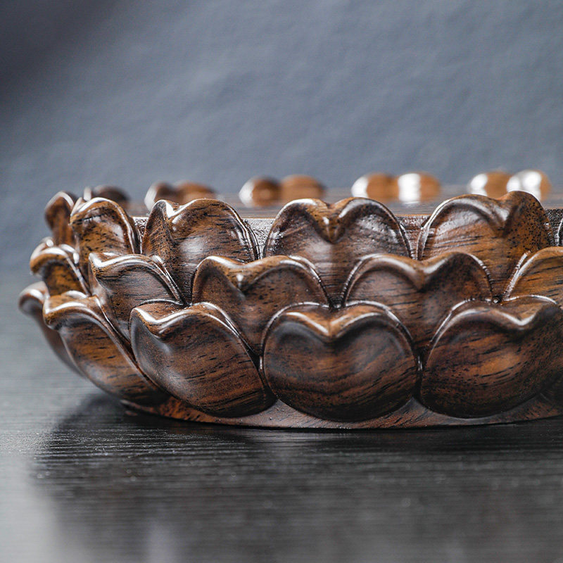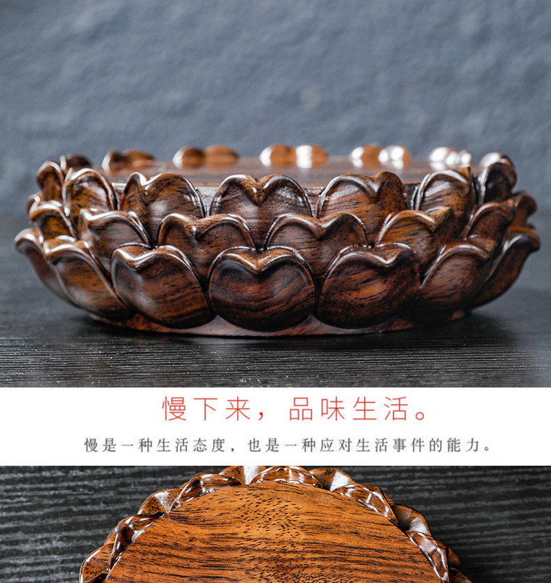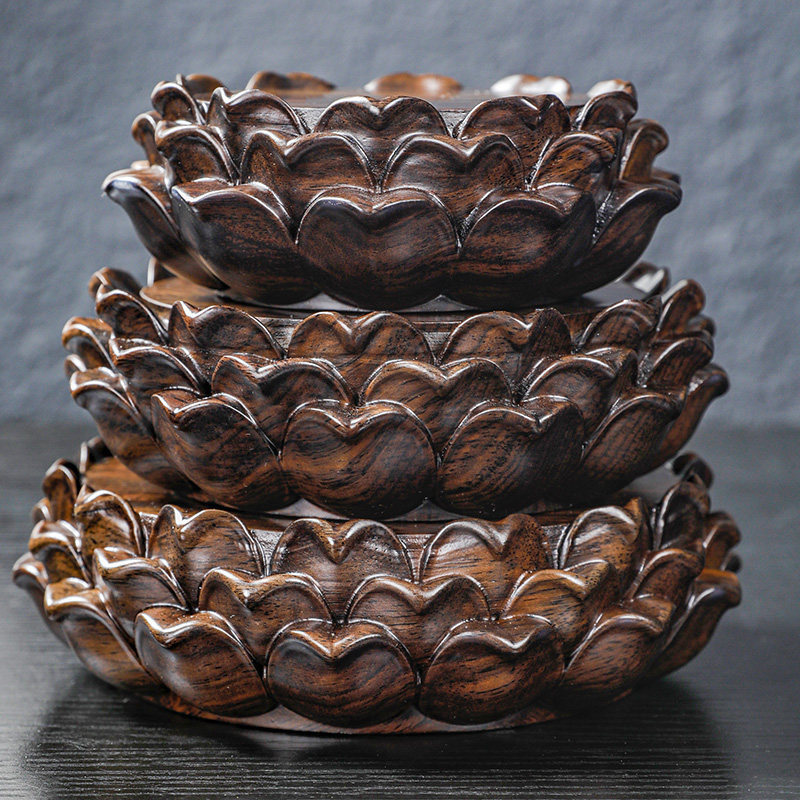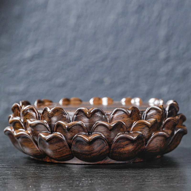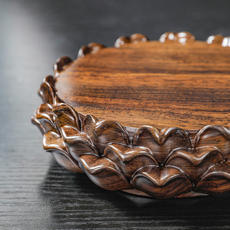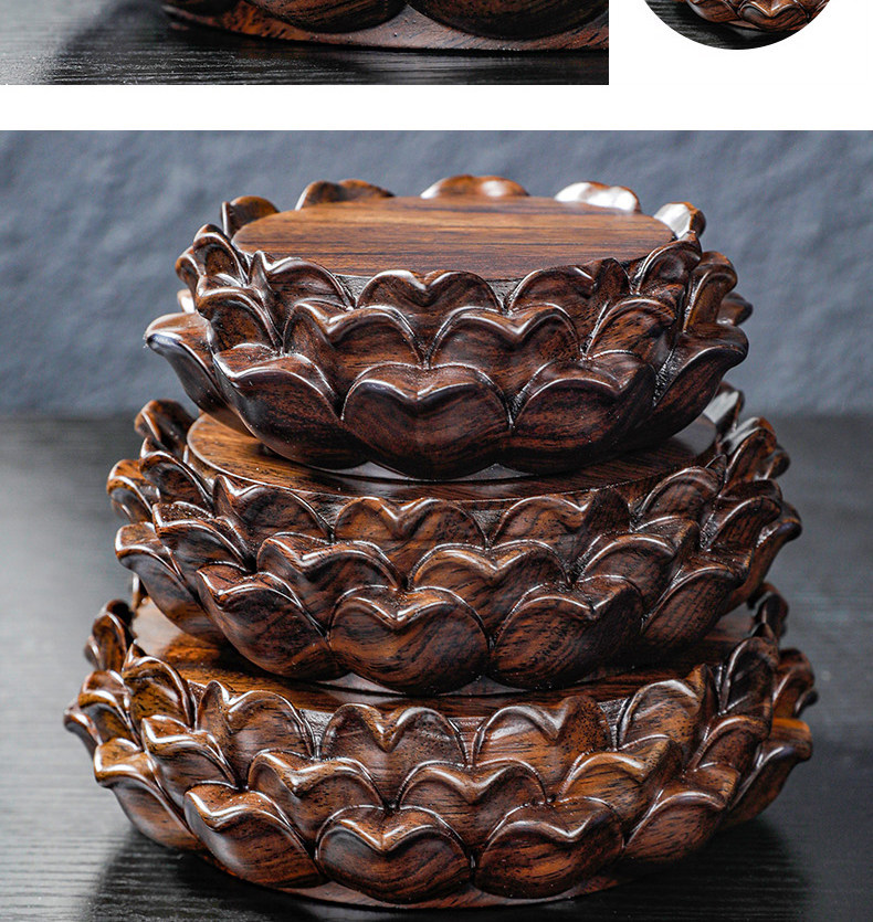 黑檀木工艺品莲花台供奉佛像加高底座实木质圆形菩萨观音莲花托架