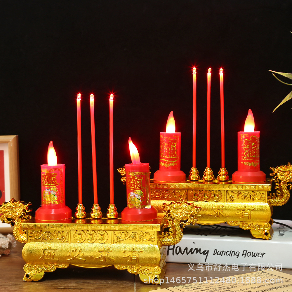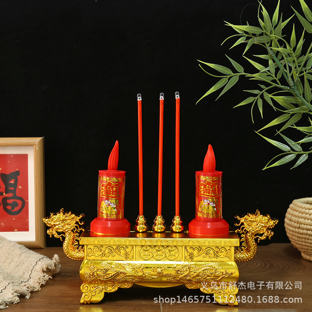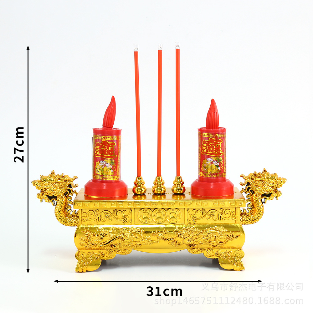 LED电子香炉 寺庙 拜佛 双龙电子蜡烛无烟蜡烛灯清明祭祖上坟用品