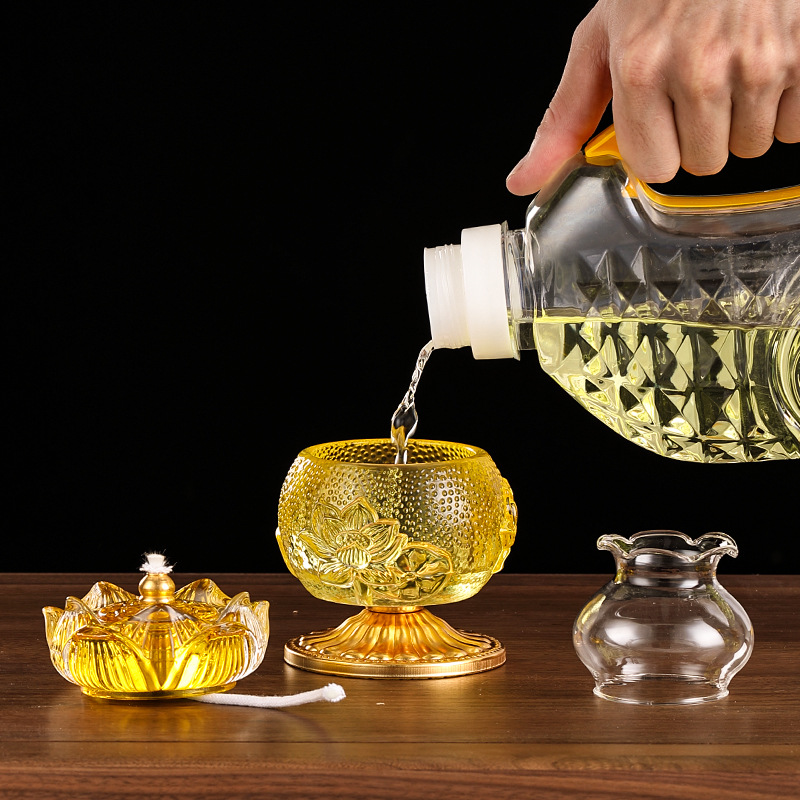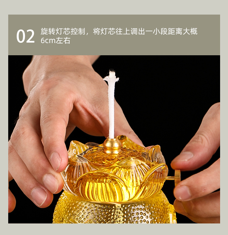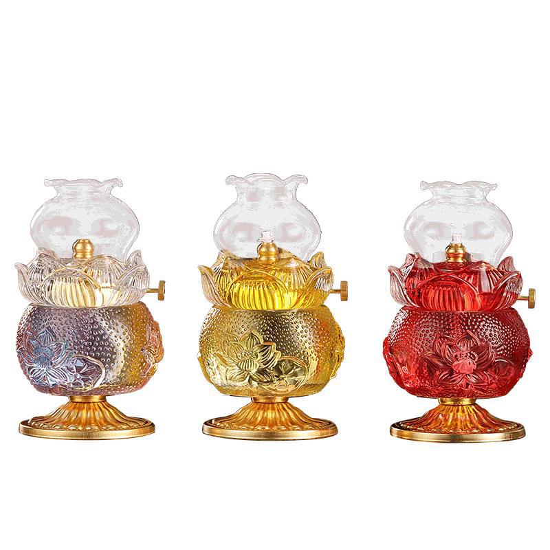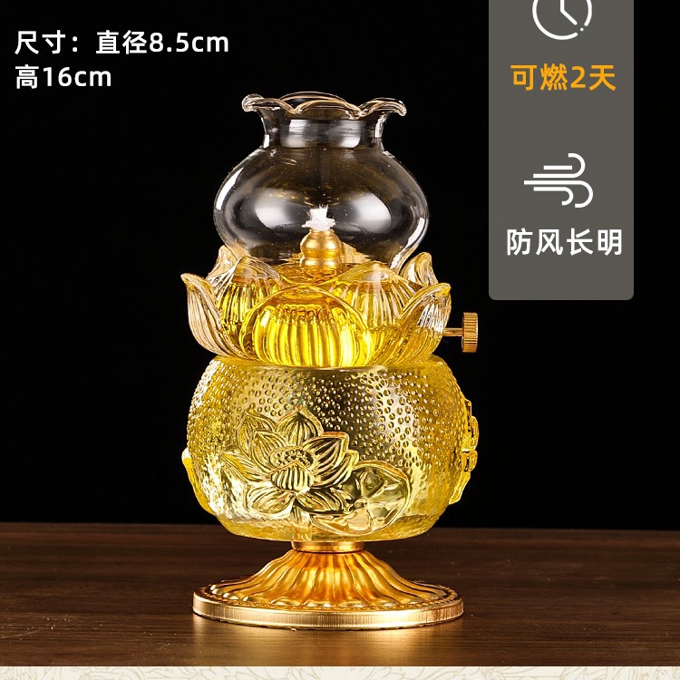 佛前供奉酥玻璃油灯盏家用防风可调长明灯莲花灯菩萨寺庙佛具用品