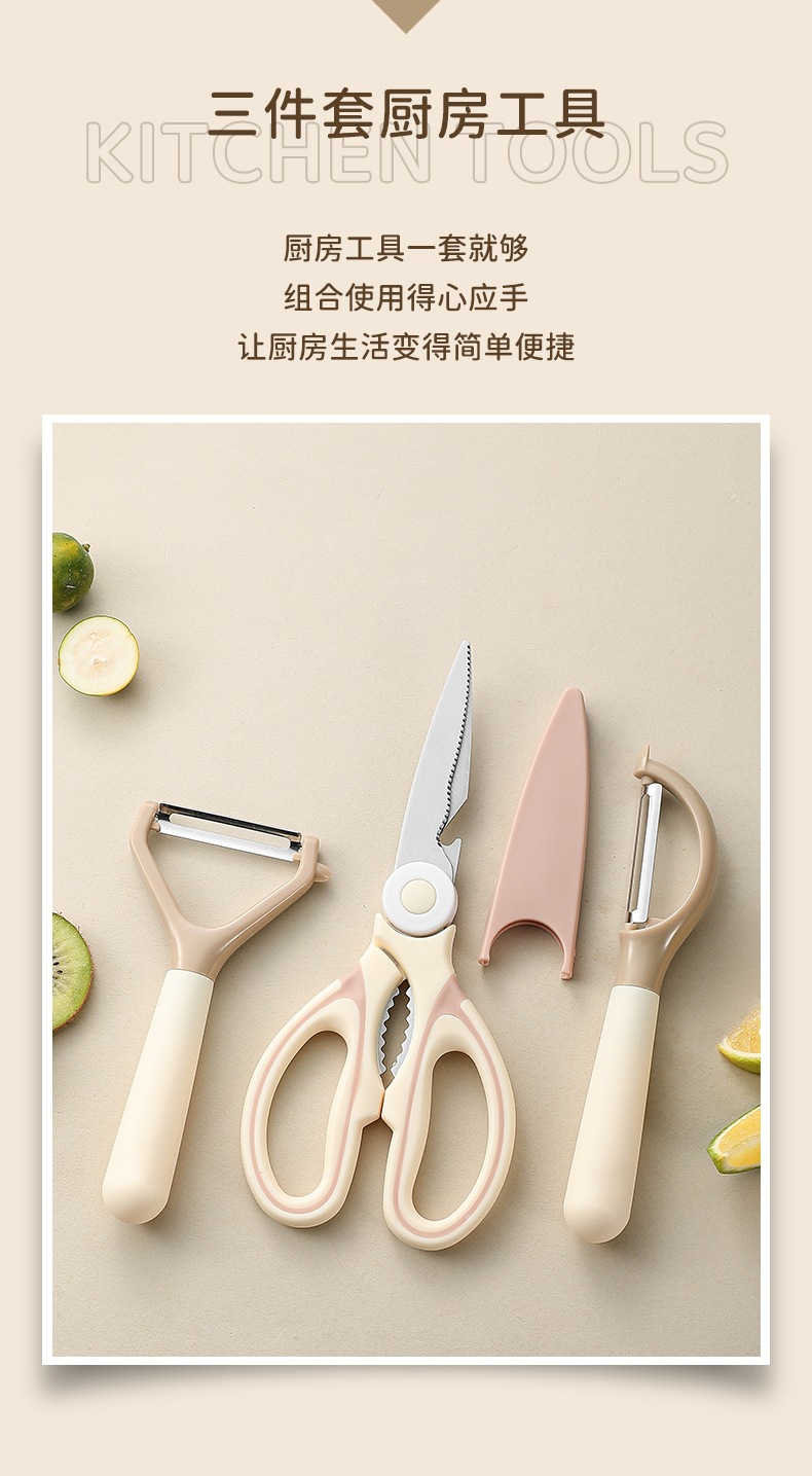 新款多功能厨房小工具套装不锈钢剪刀削皮刀家用剪刀水果削皮刀