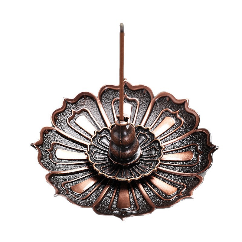 中式民族线香盘香底座莲花香插香座家用香炉室内金属配件摆件厂家