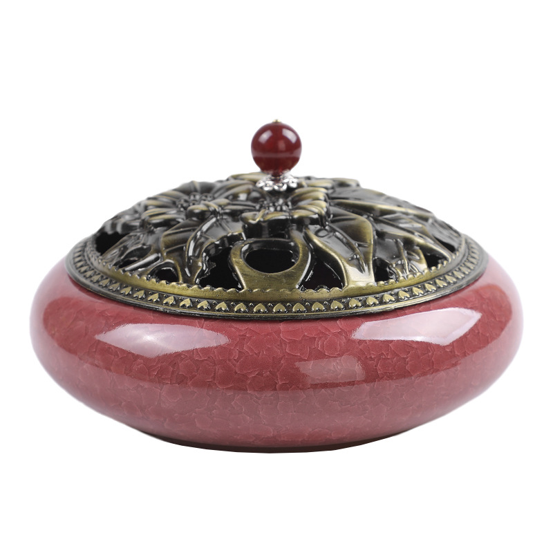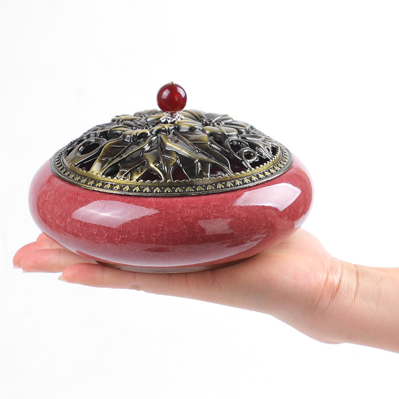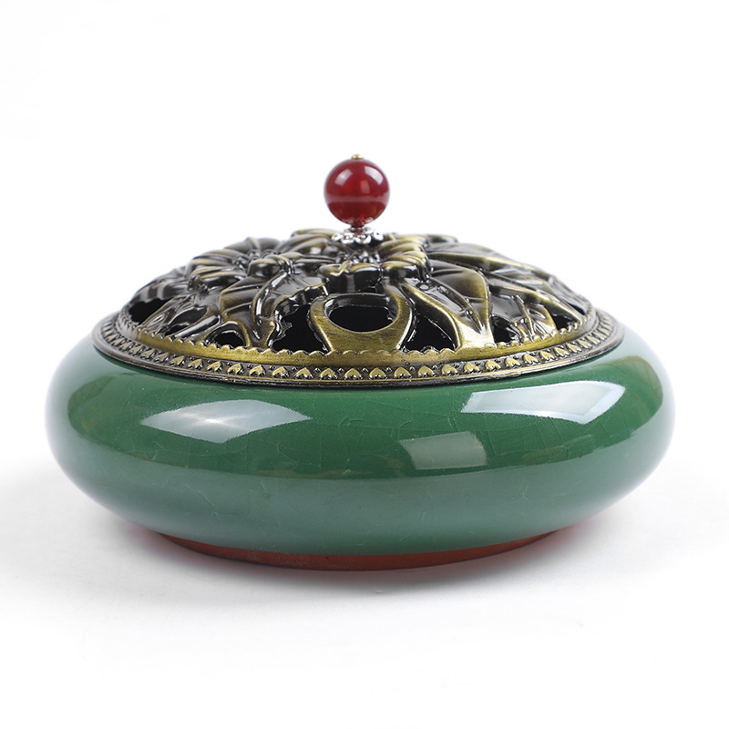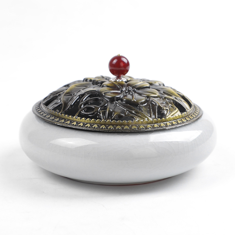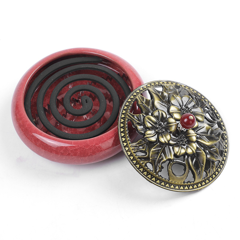岩山 家用大号冰裂陶瓷蚊香炉 檀香薰炉香盒蚊香架室内现代盘香炉
