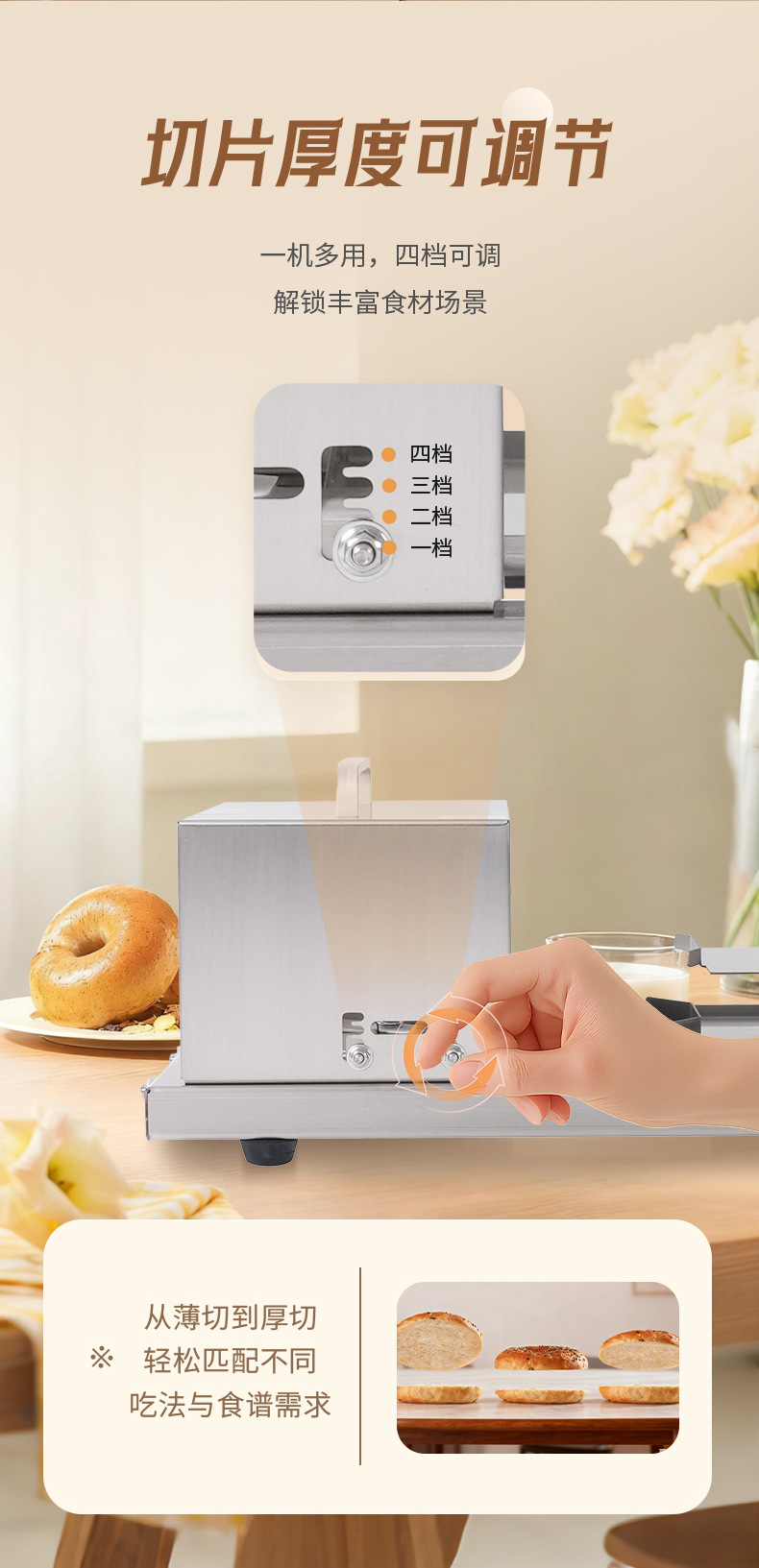 跨境面包切片机商用厨房用具贝果汉堡切割机不锈钢手动面包切片器