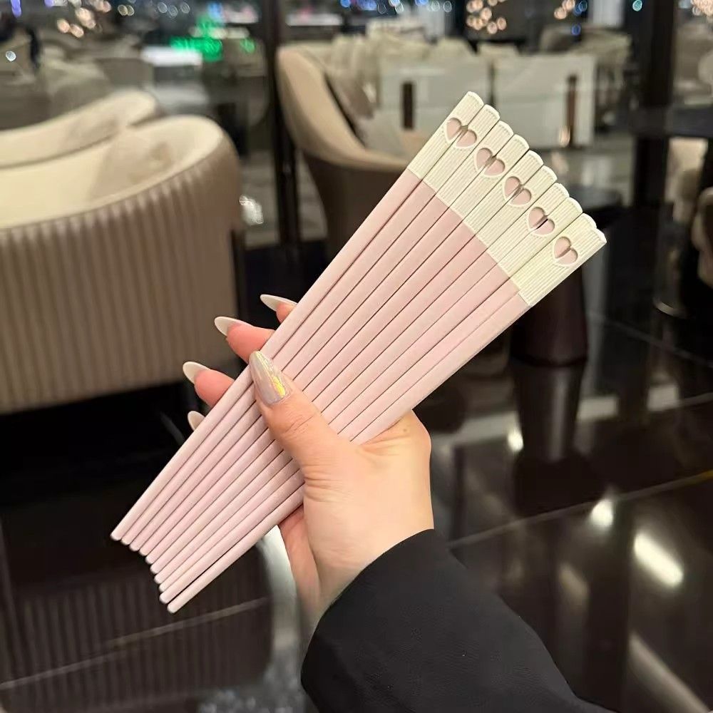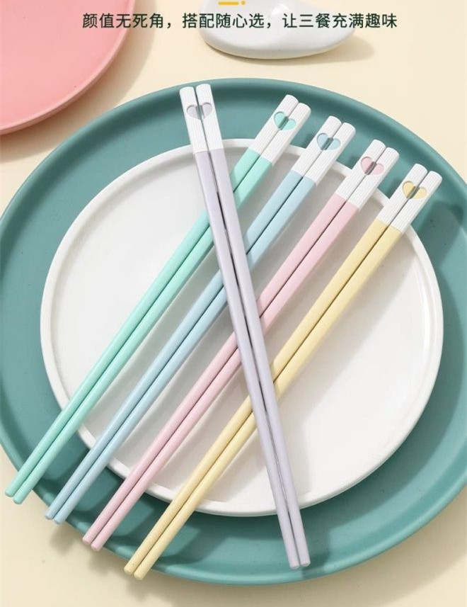 塑料筷子高颜值可爱粉色爱心火锅筷家用一人一筷舒适防滑筷子公筷