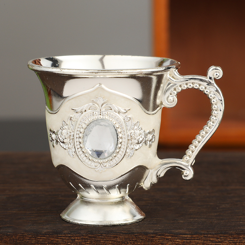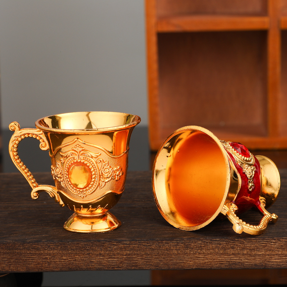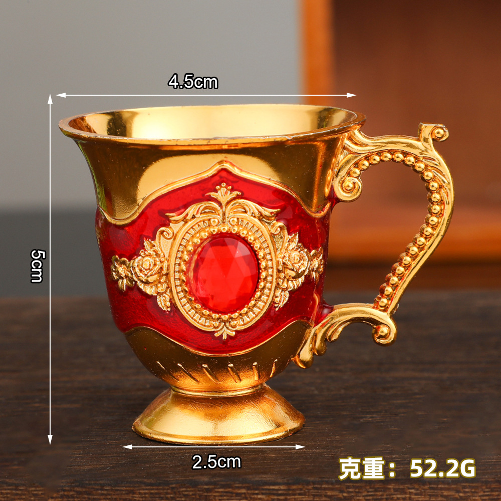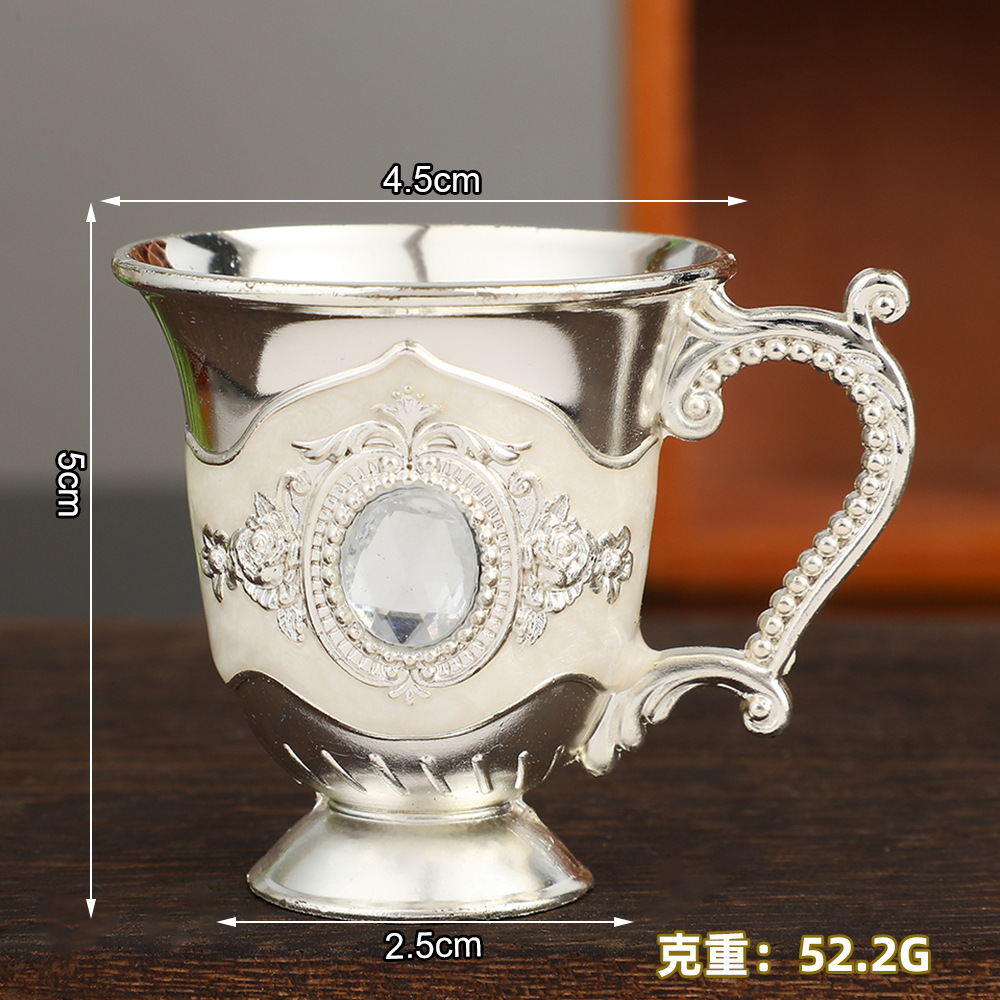 欧式复古白酒杯带手柄金属工艺品创意家用酒杯摆件轻奢金属烈酒杯