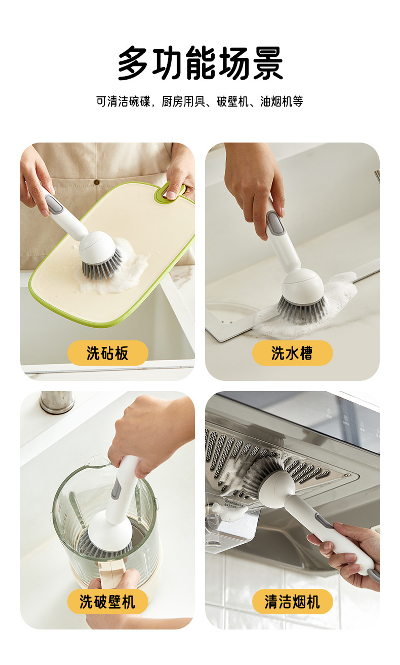 长柄加液旋转锅刷厨房专用洗锅刷子不沾油不伤锅多功能清洁刷家用