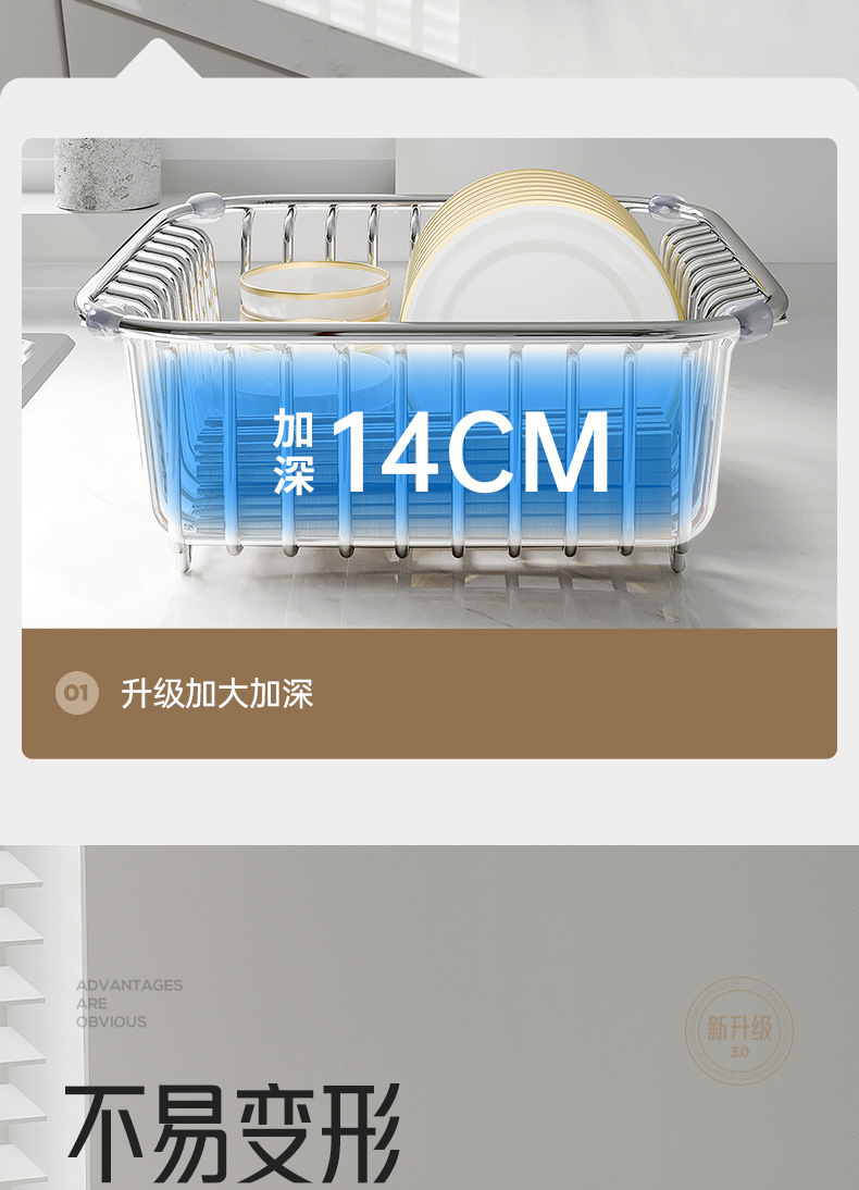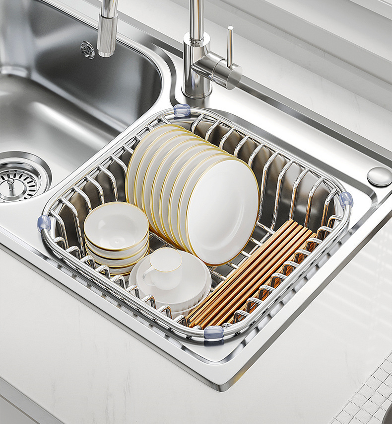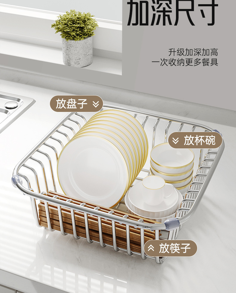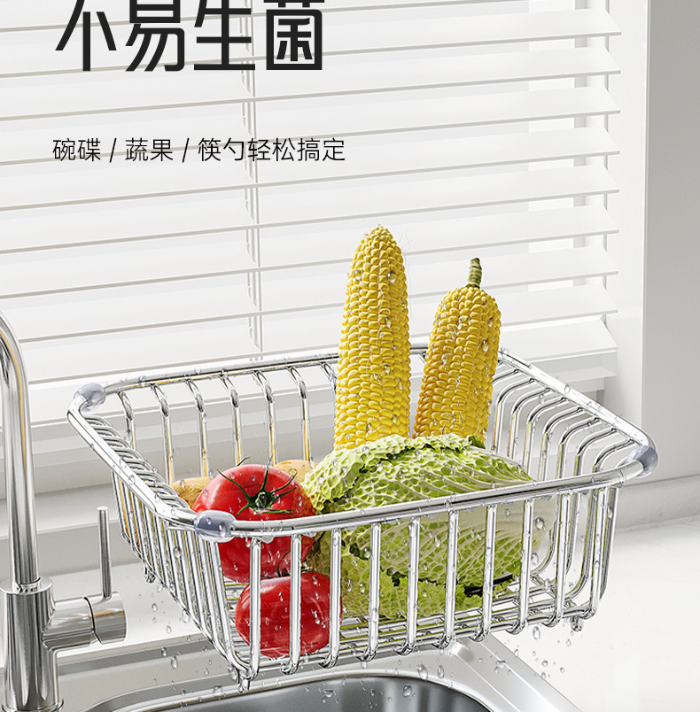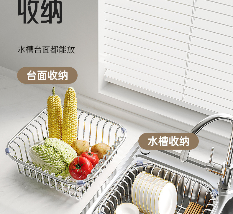 尔沫沥水篮厨房水槽置物架碗碟收纳用品沥水洗碗池滤网架子不锈钢