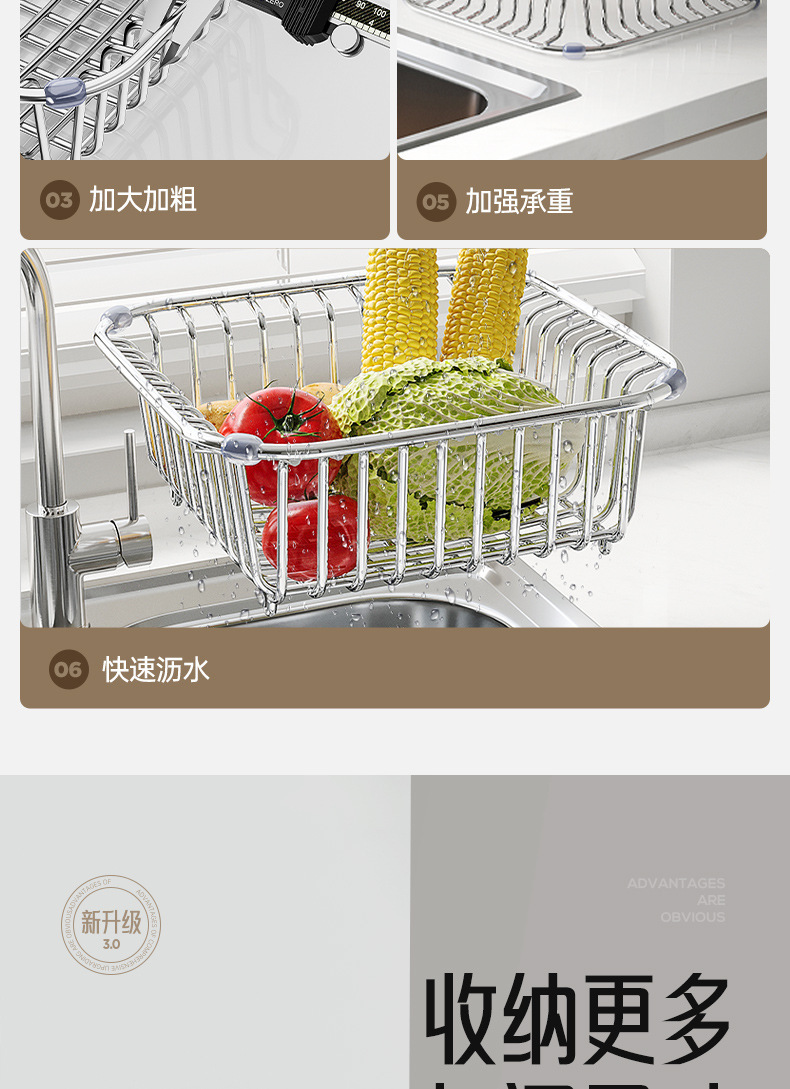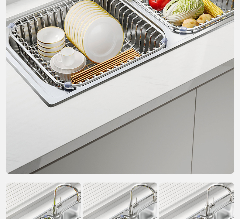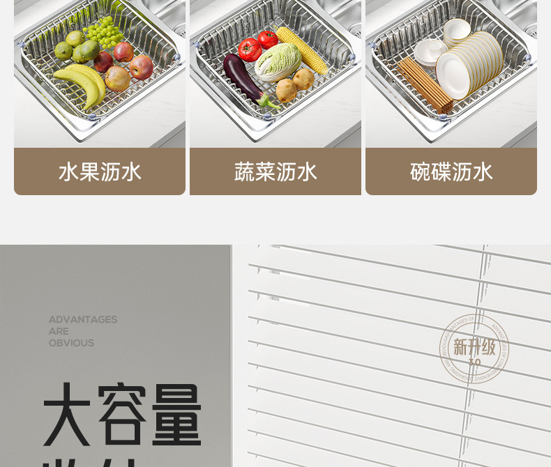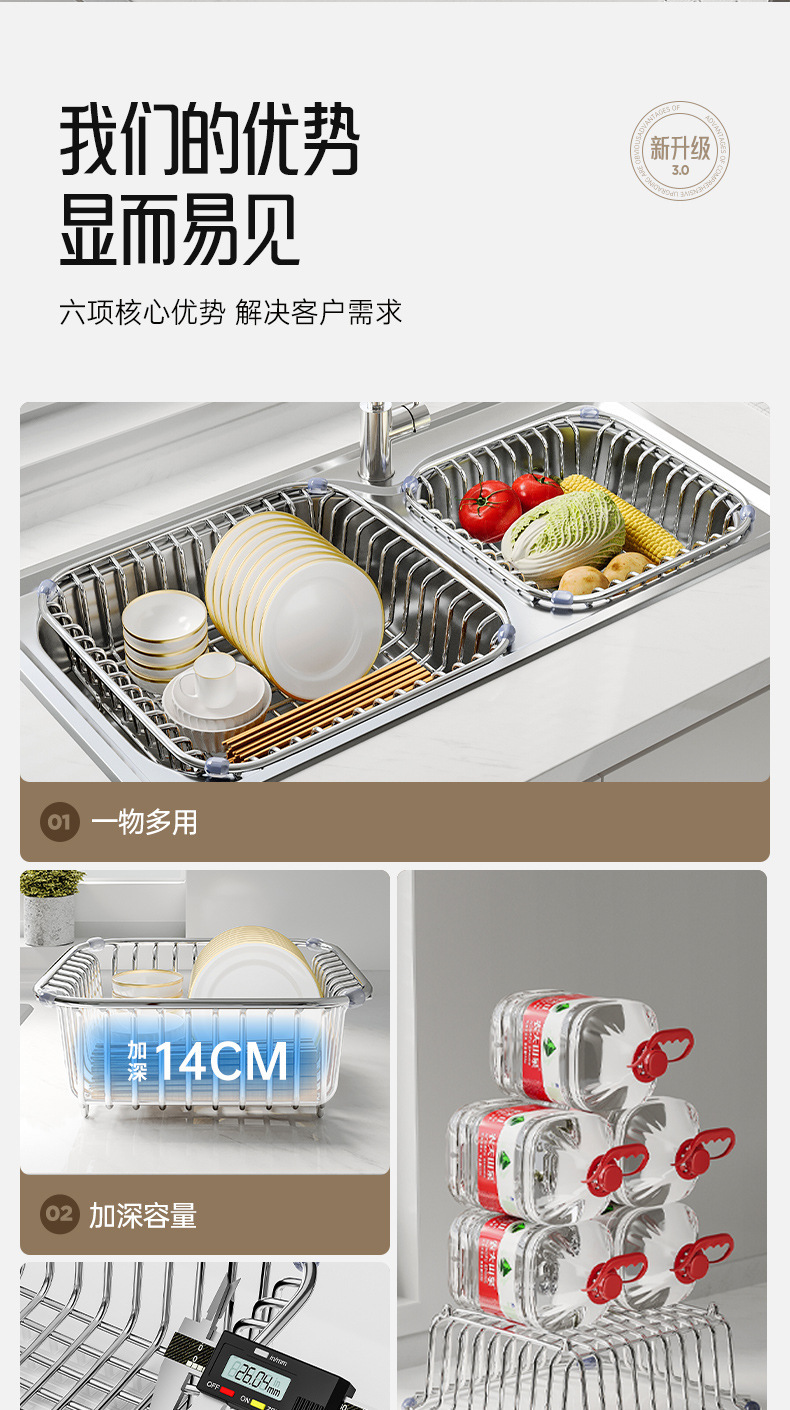 尔沫沥水篮厨房水槽置物架碗碟收纳用品沥水洗碗池滤网架子不锈钢