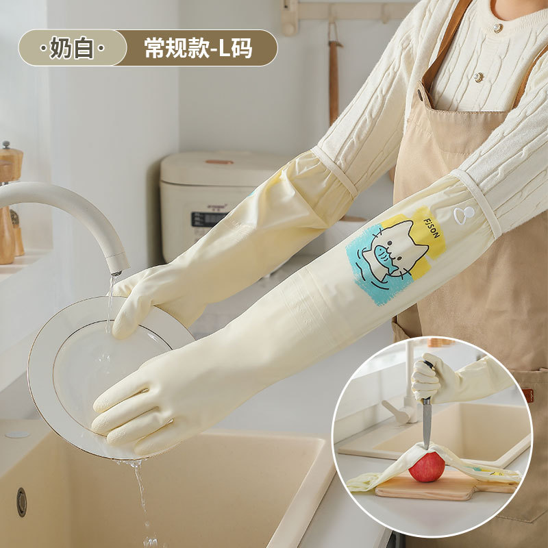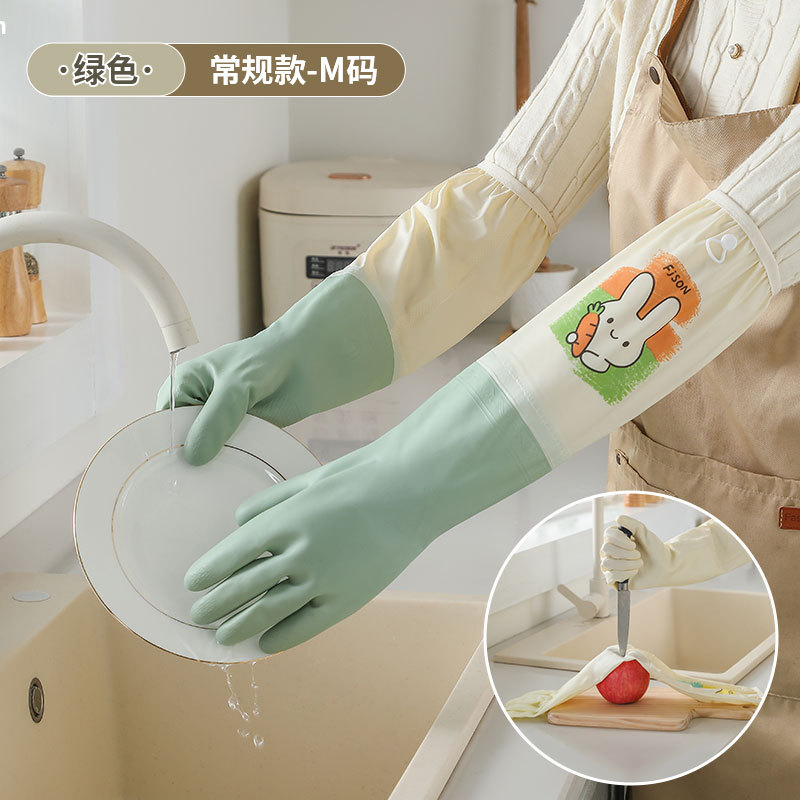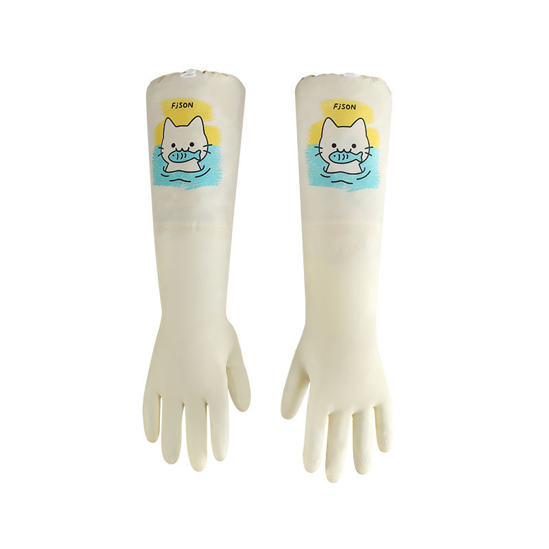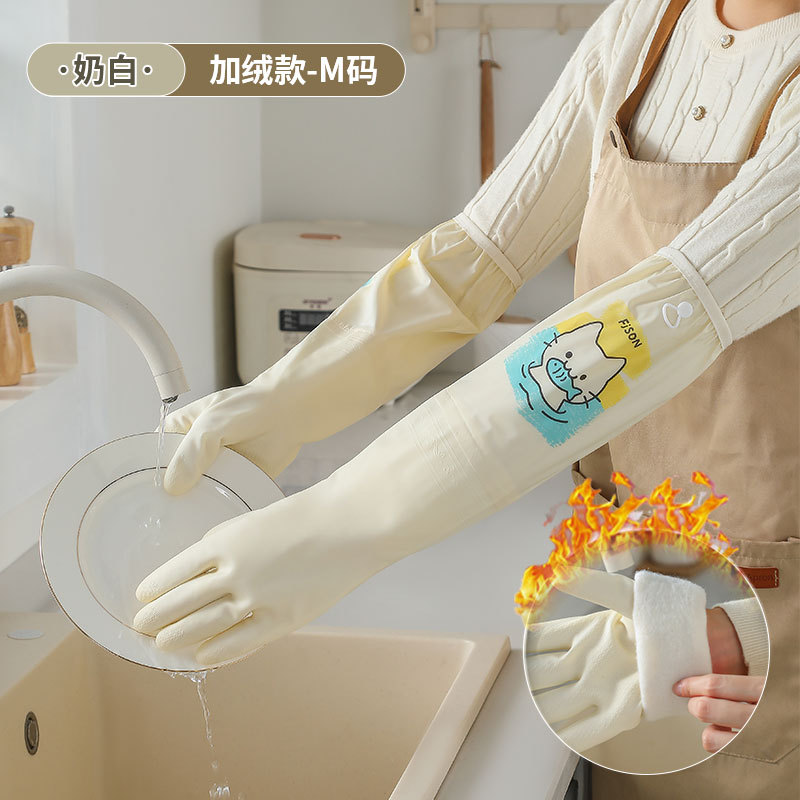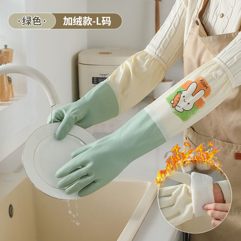 萌趣手套加长加绒束口手套家务洗碗厨房耐用防水防污专用家务手套