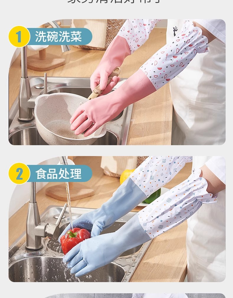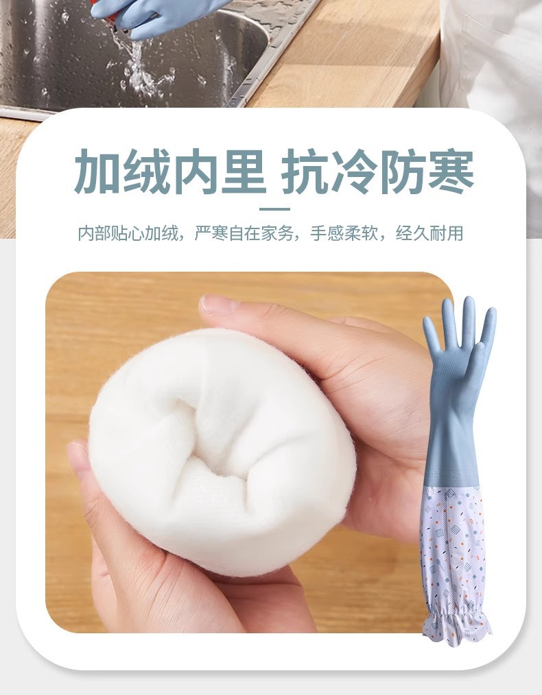 洗碗手套加绒冬天保暖劳保耐磨防水乳胶女洗衣服刷碗胶皮防蜂手套