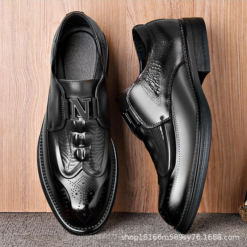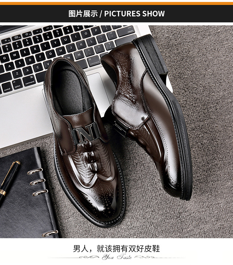 秋季新款正装皮鞋男士商务休闲男鞋英伦风雕花鞋子真皮头层牛皮
