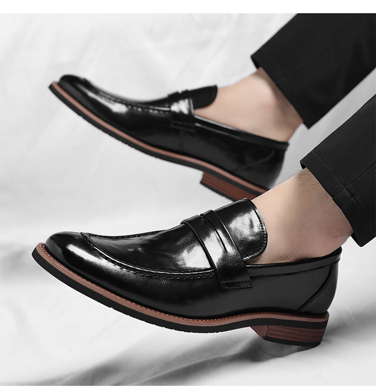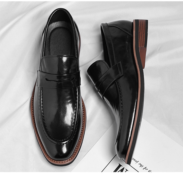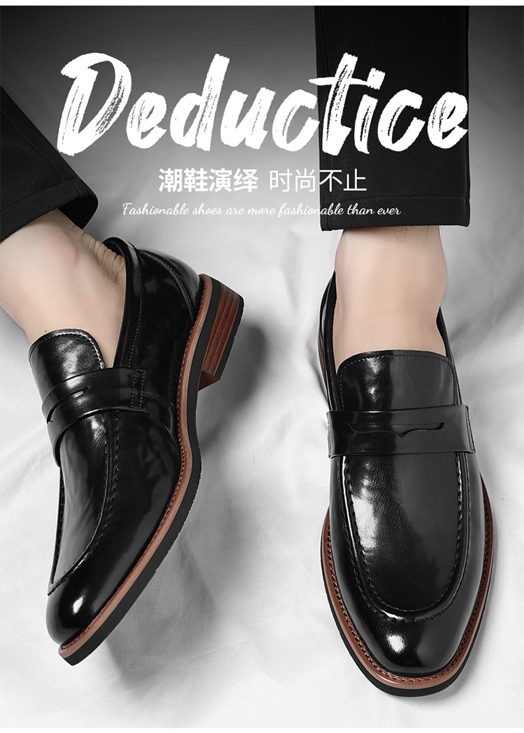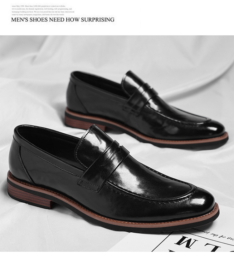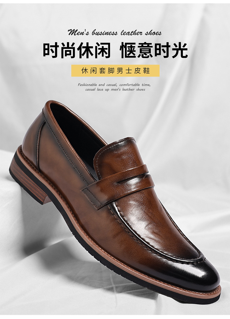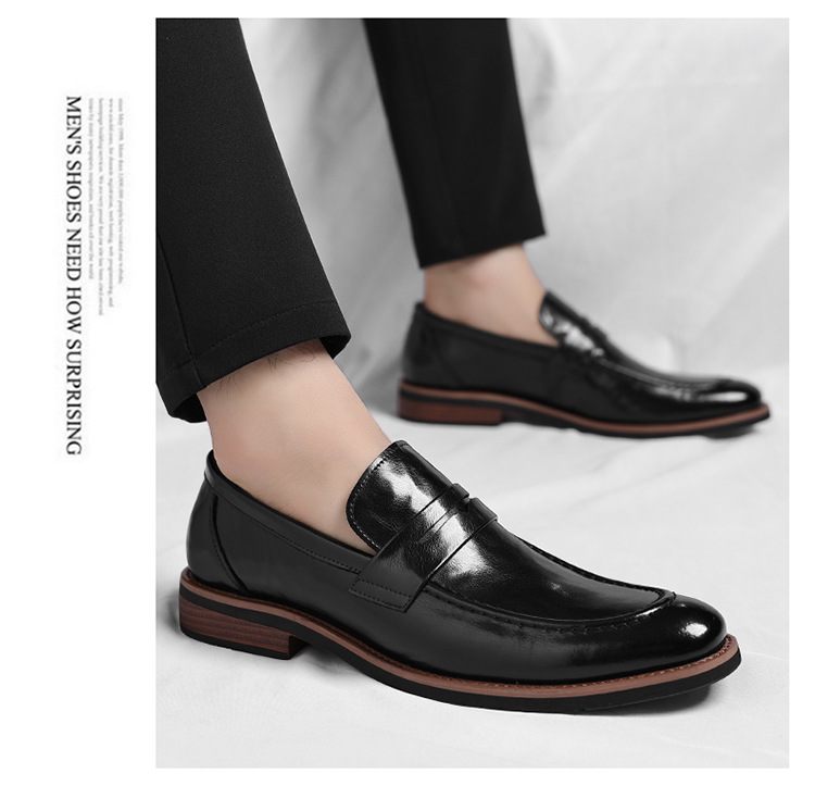 跨境大码皮鞋男秋季新款英伦风套脚软底男士商务休闲高级感新郎鞋