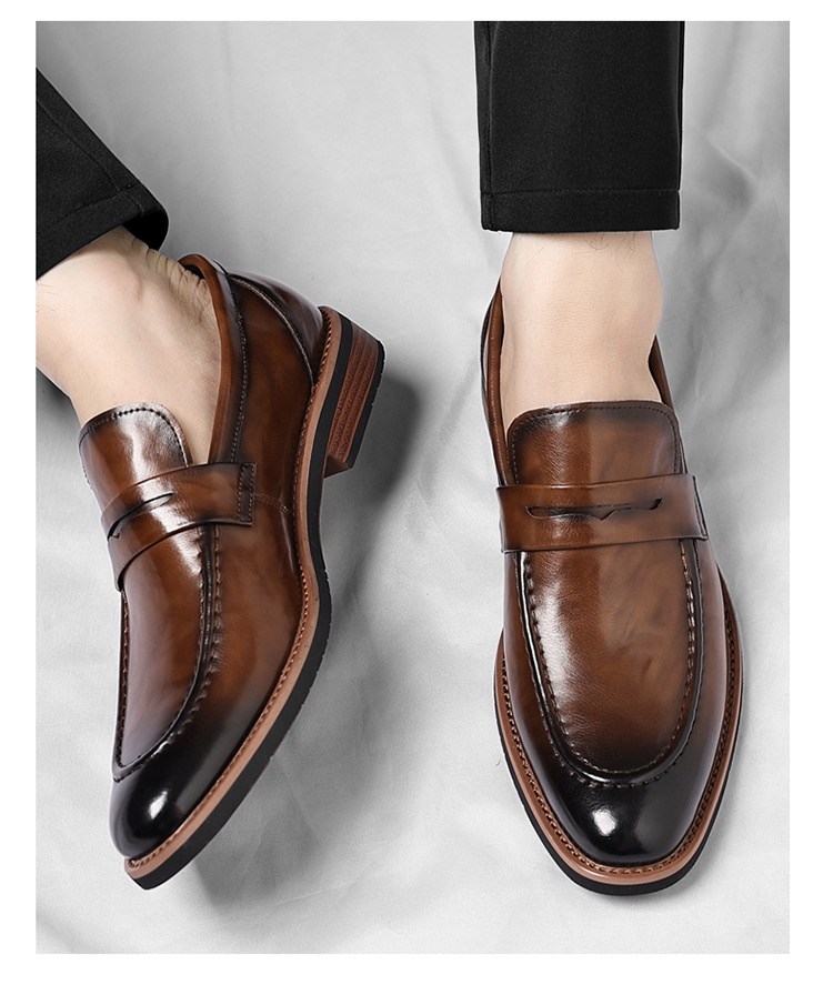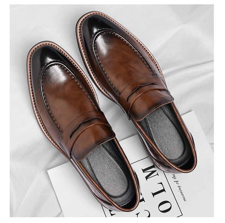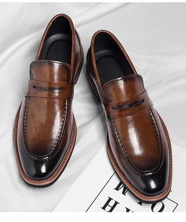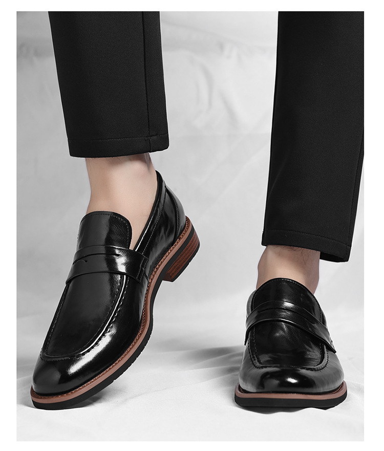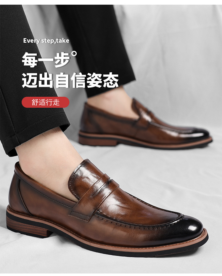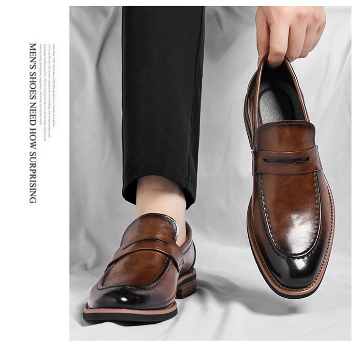 跨境大码皮鞋男秋季新款英伦风套脚软底男士商务休闲高级感新郎鞋
