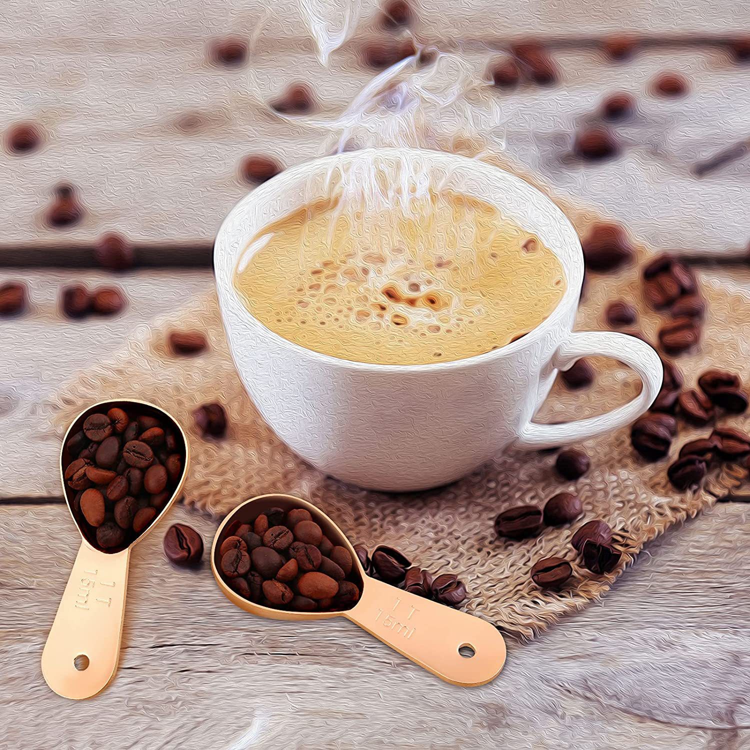 亚马逊热销304不锈钢咖啡勺 创意金属咖啡量勺带刻度量匙套装