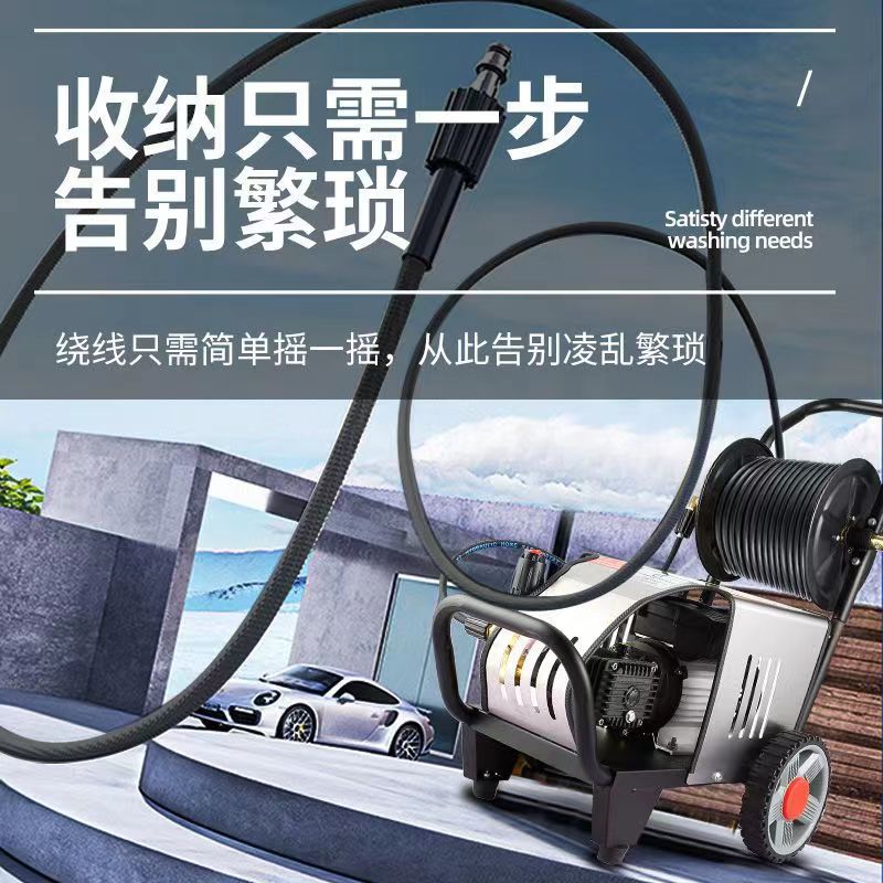 卷管器收纳高压洗车机大功率商用家用自动洗车泵养殖场高压清洗机