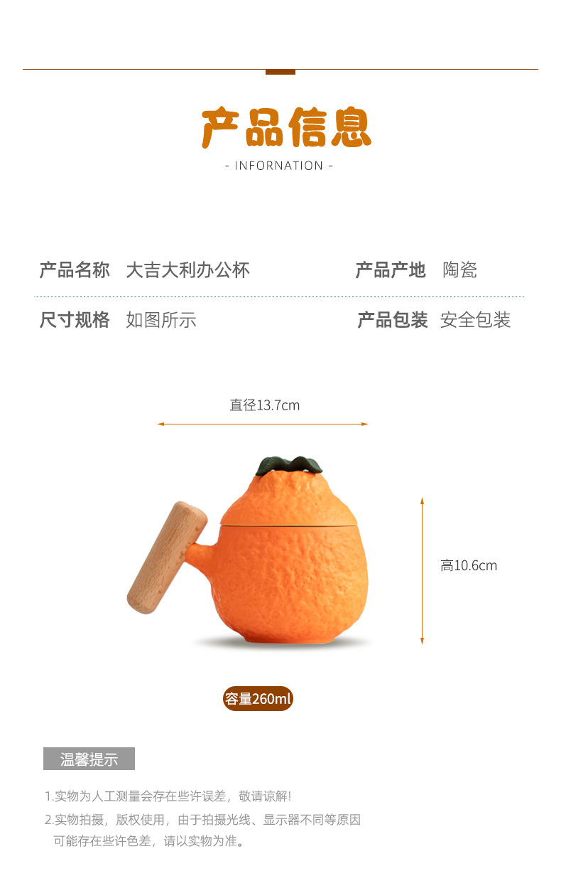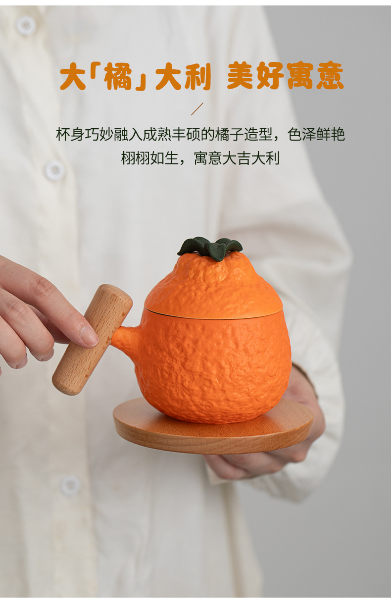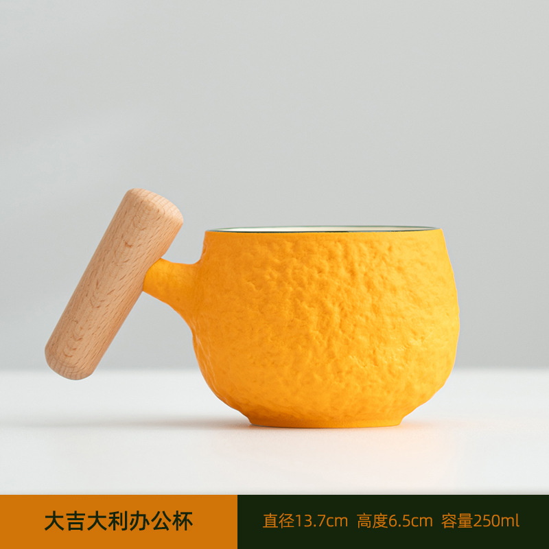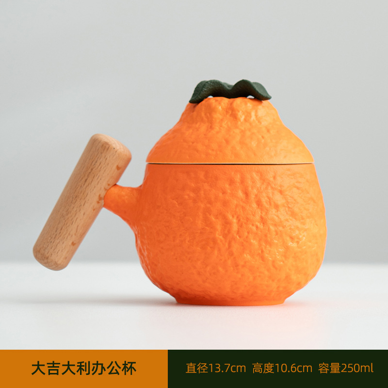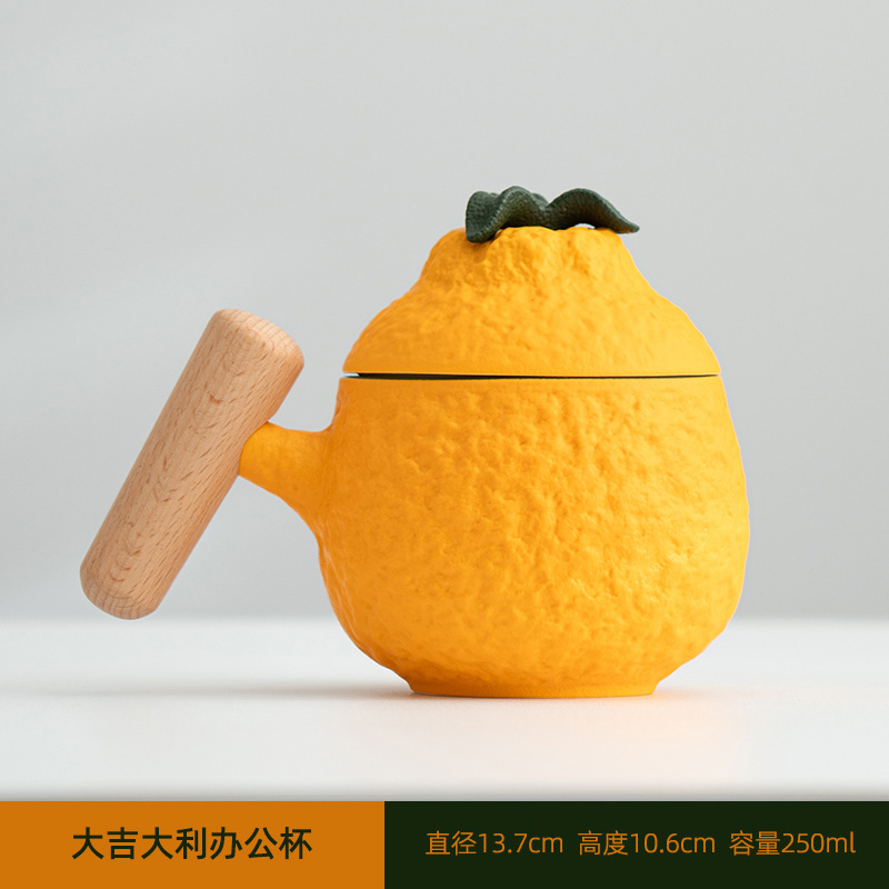 大吉大利丑橘马克杯陶瓷杯子喝水杯带盖办公室礼品咖啡茶杯定logo