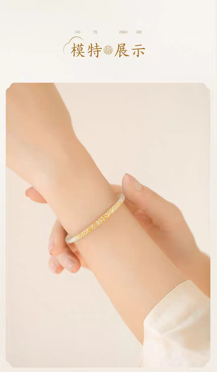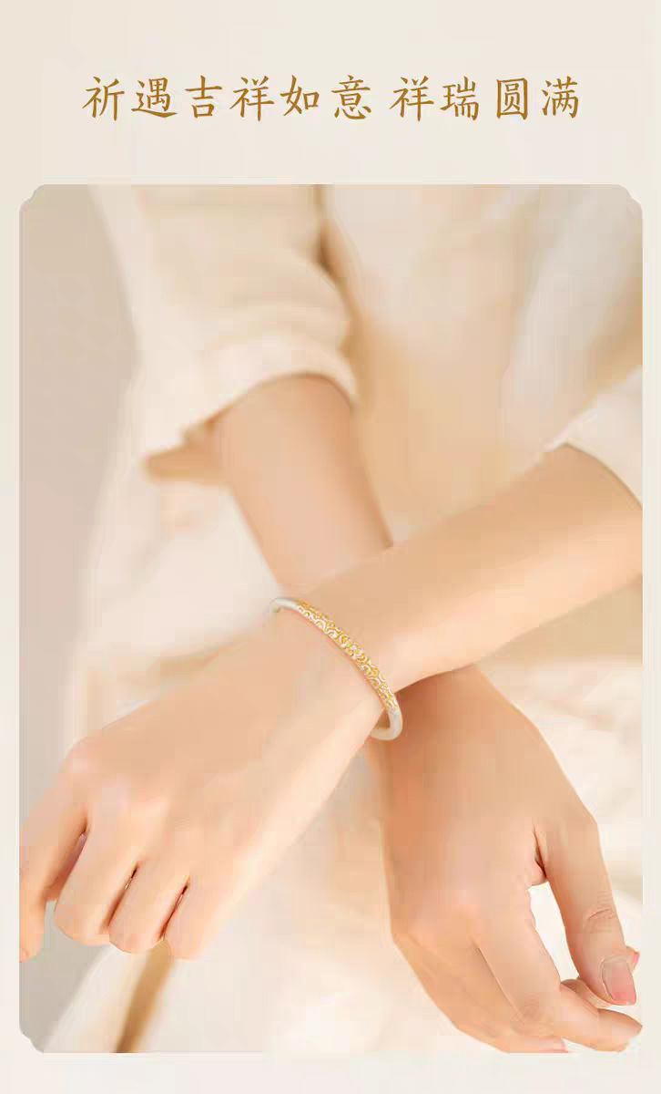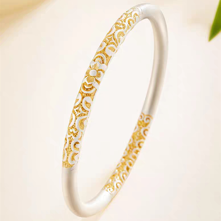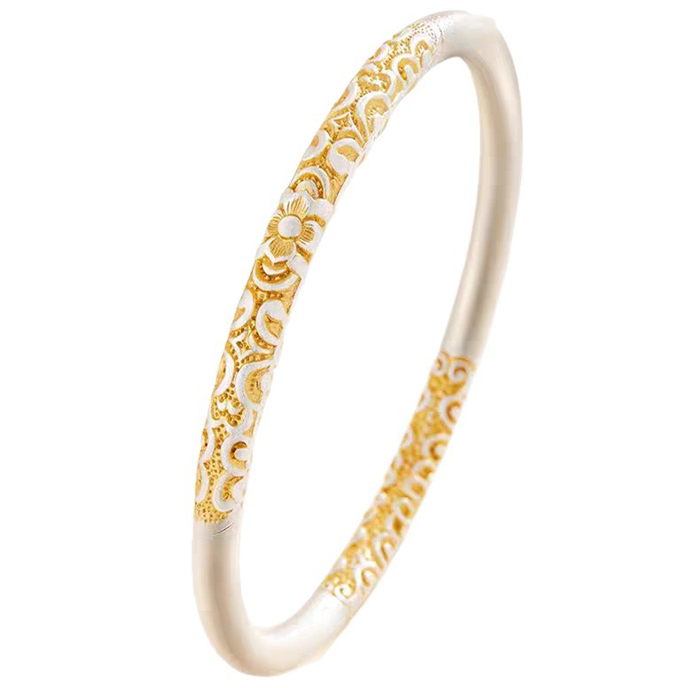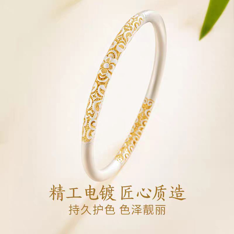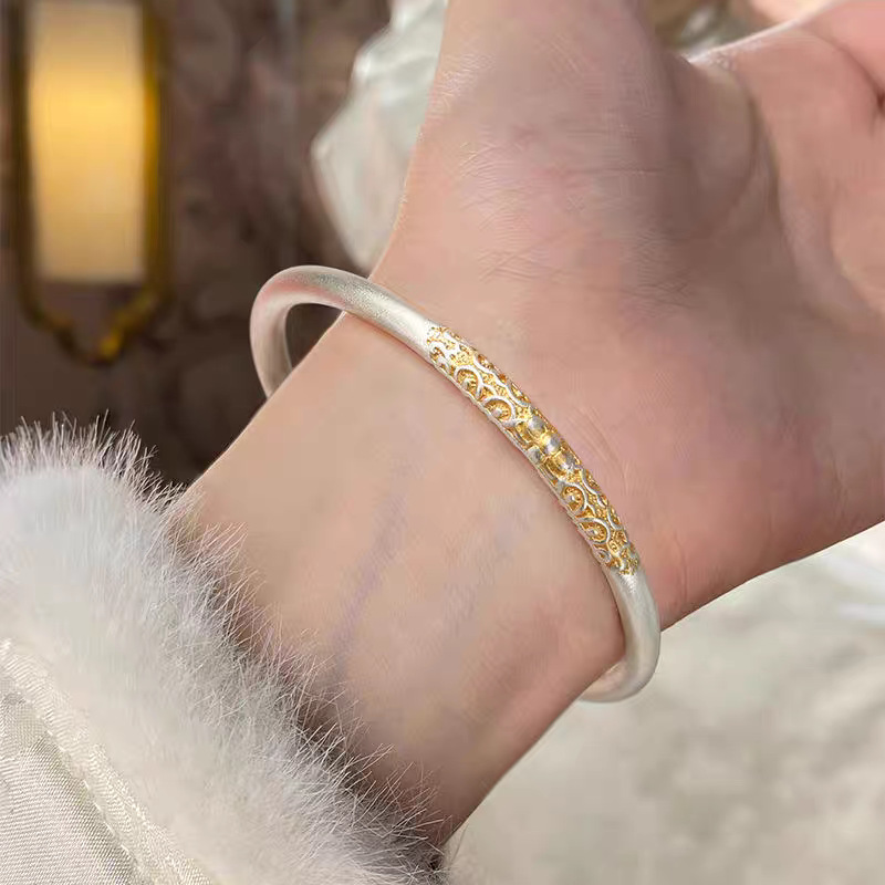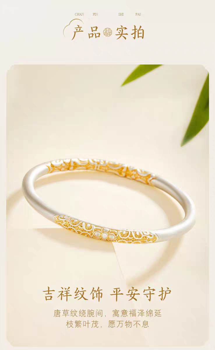 新中式枝繁叶茂描金闭口卷唐草纹手镯女古风精致磨砂手环年轻款