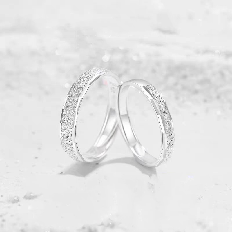新款满天星素圈磨砂星河男女情侣对戒指活口一对轻奢小众情人节礼