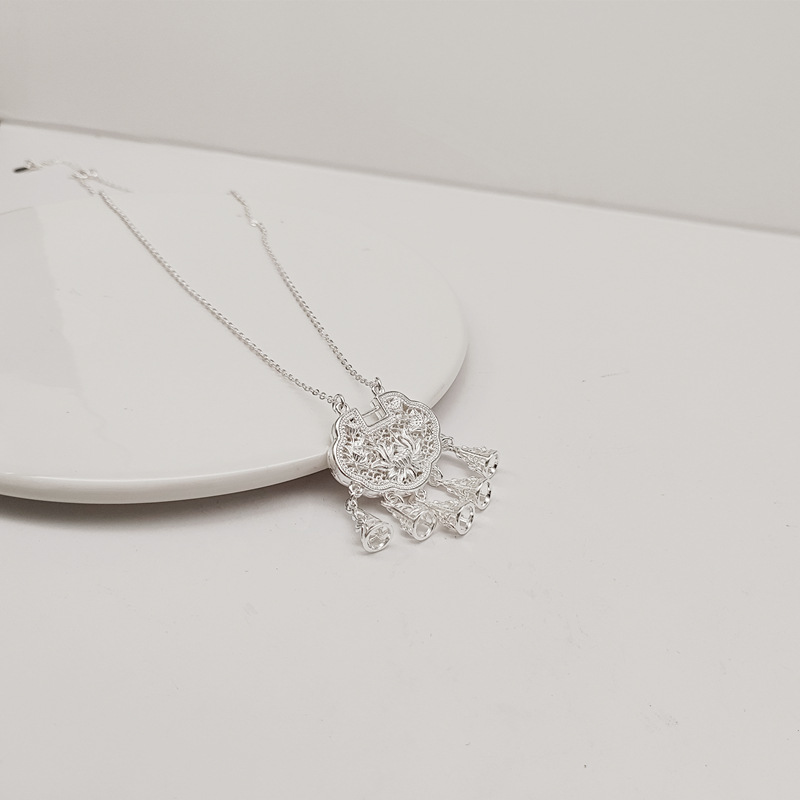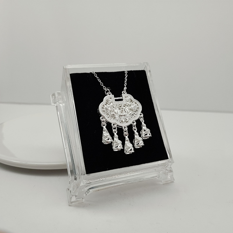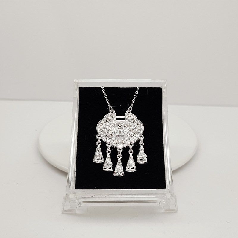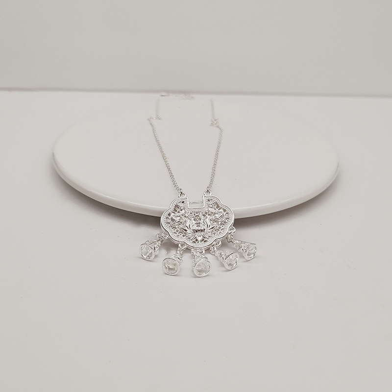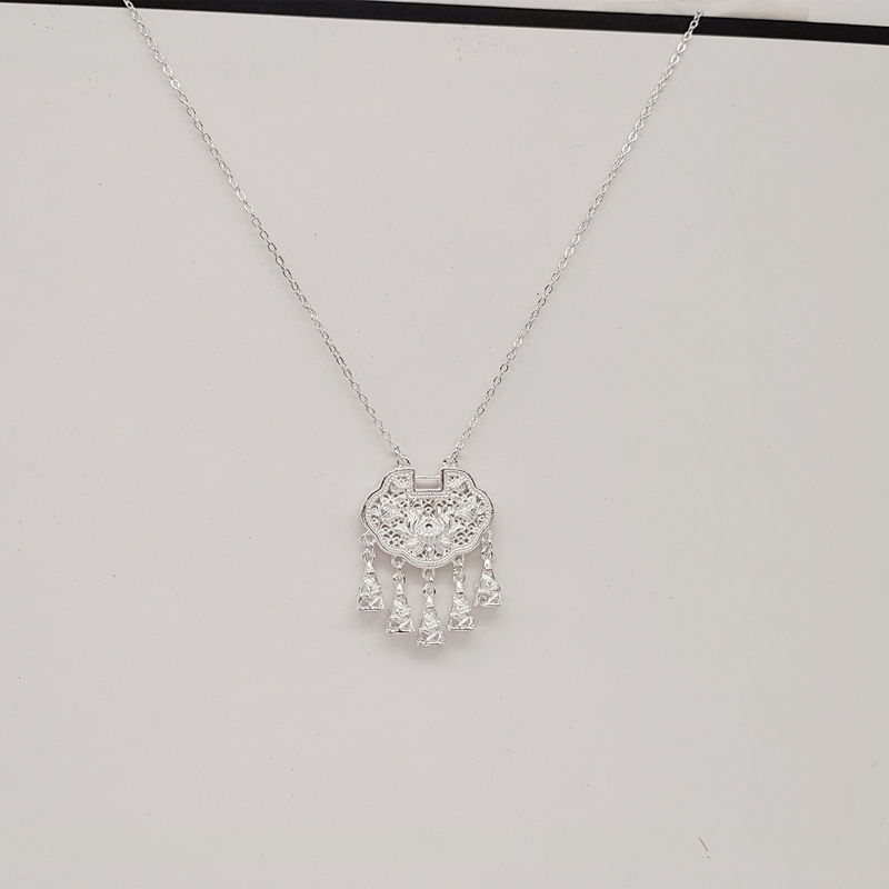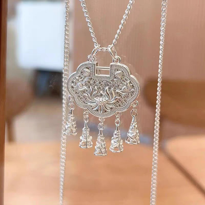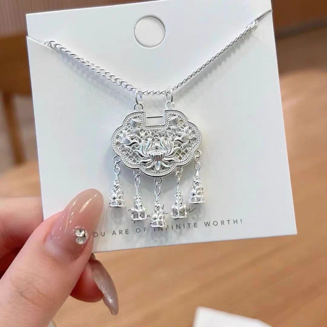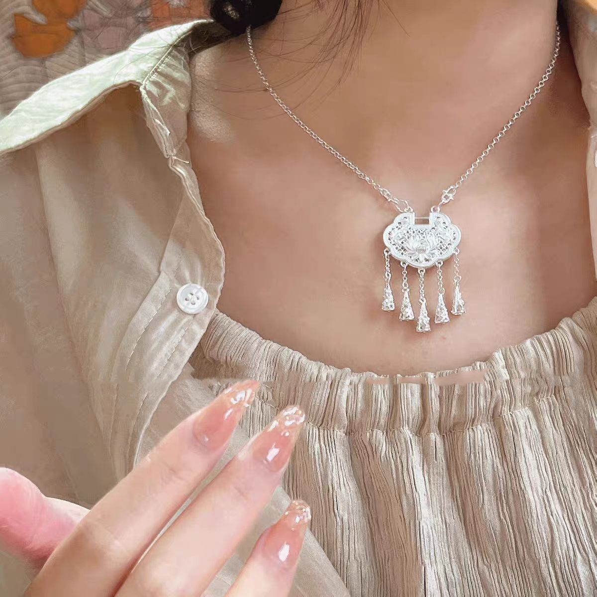 新中式古风浮雕莲花流苏镂空锁包国潮风项链百搭文艺锁骨链送女友