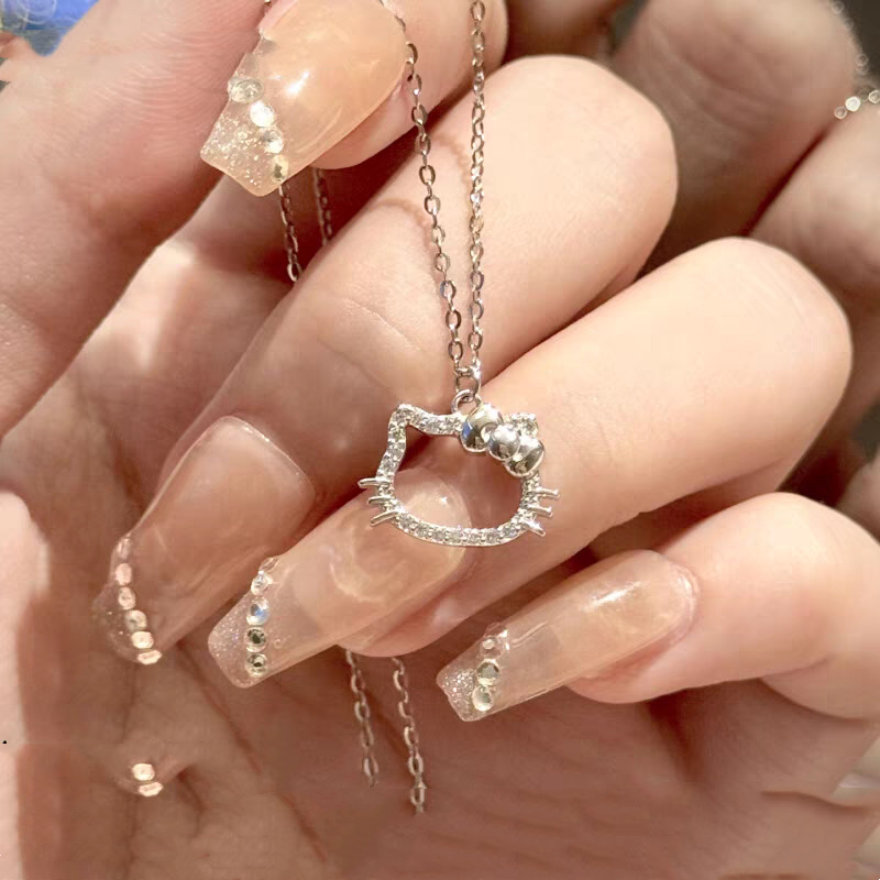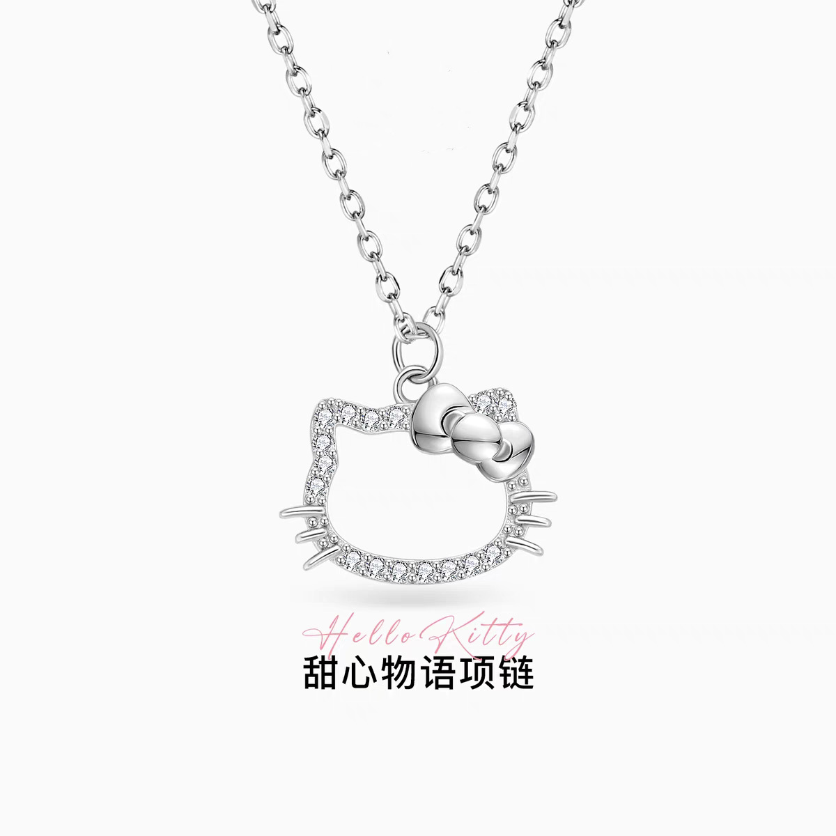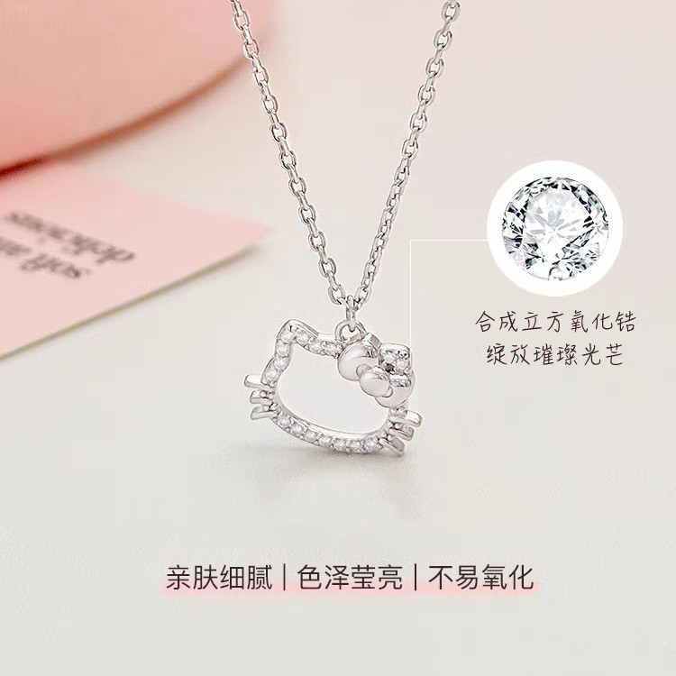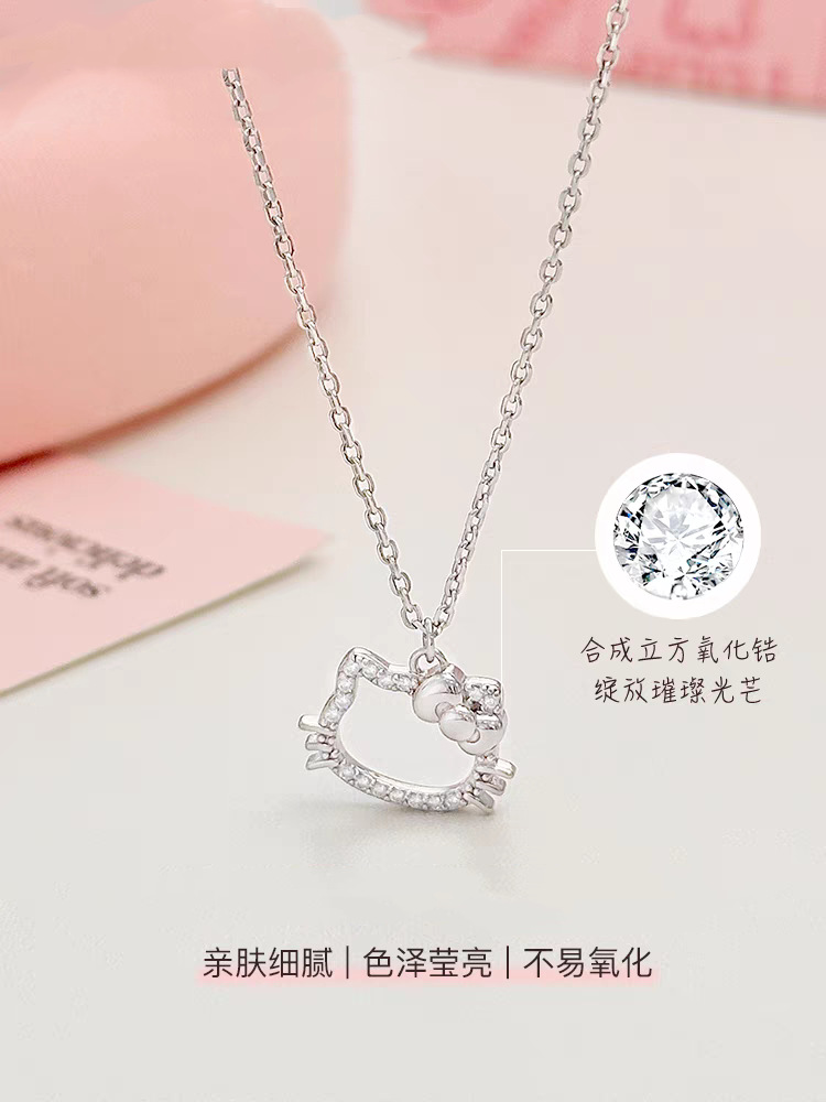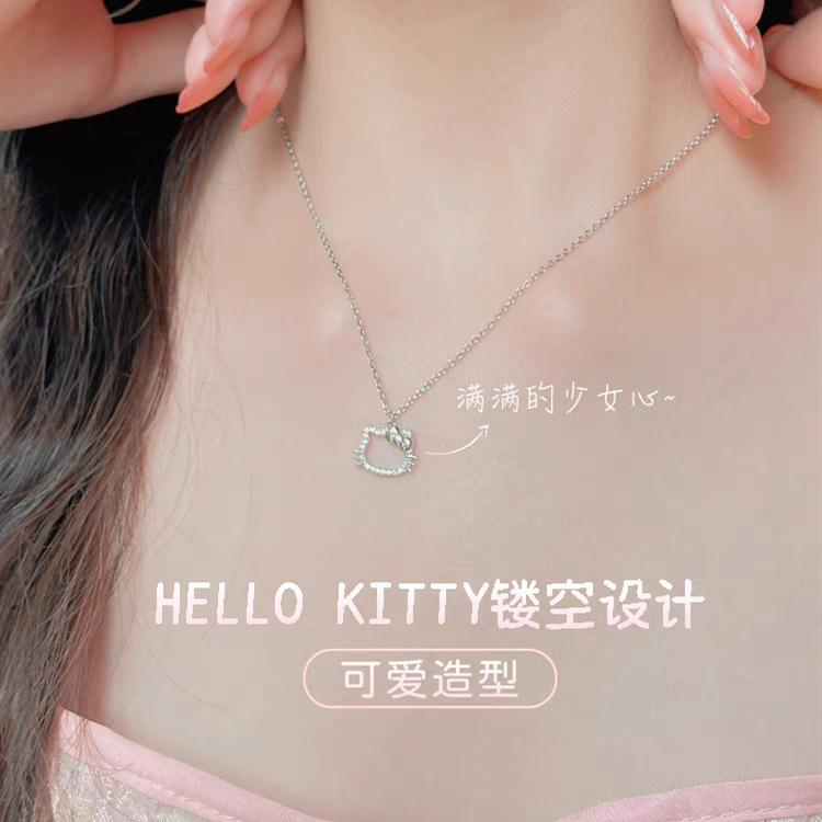 新款Kitty项链女甜美kt锁骨链轻奢带钻小众卡通KT猫可爱简约项链