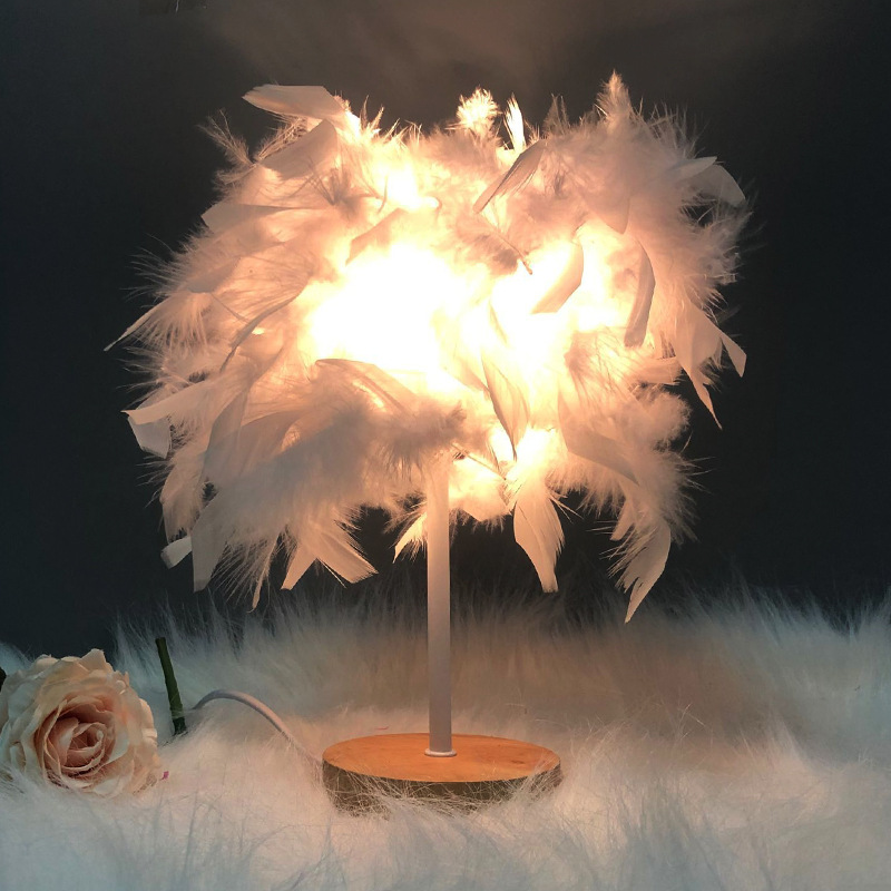 创意北欧台灯高级感轻奢羽毛灯婚房装饰网红ins少女心卧室床头灯