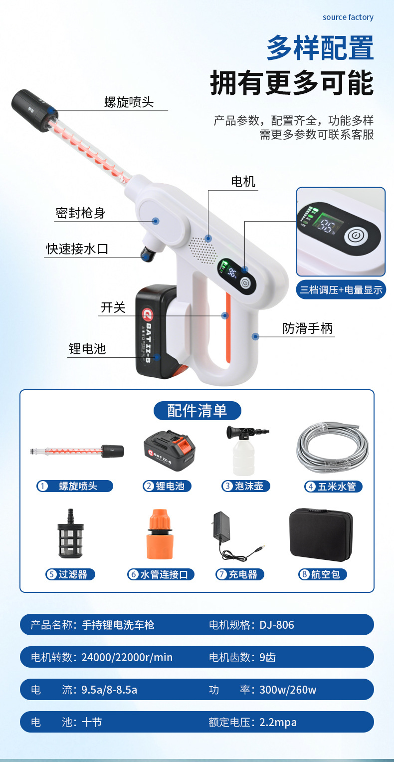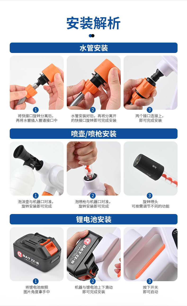 跨境高压无线洗车机家用充电式锂电花园浇花水枪汽车美容套装批发